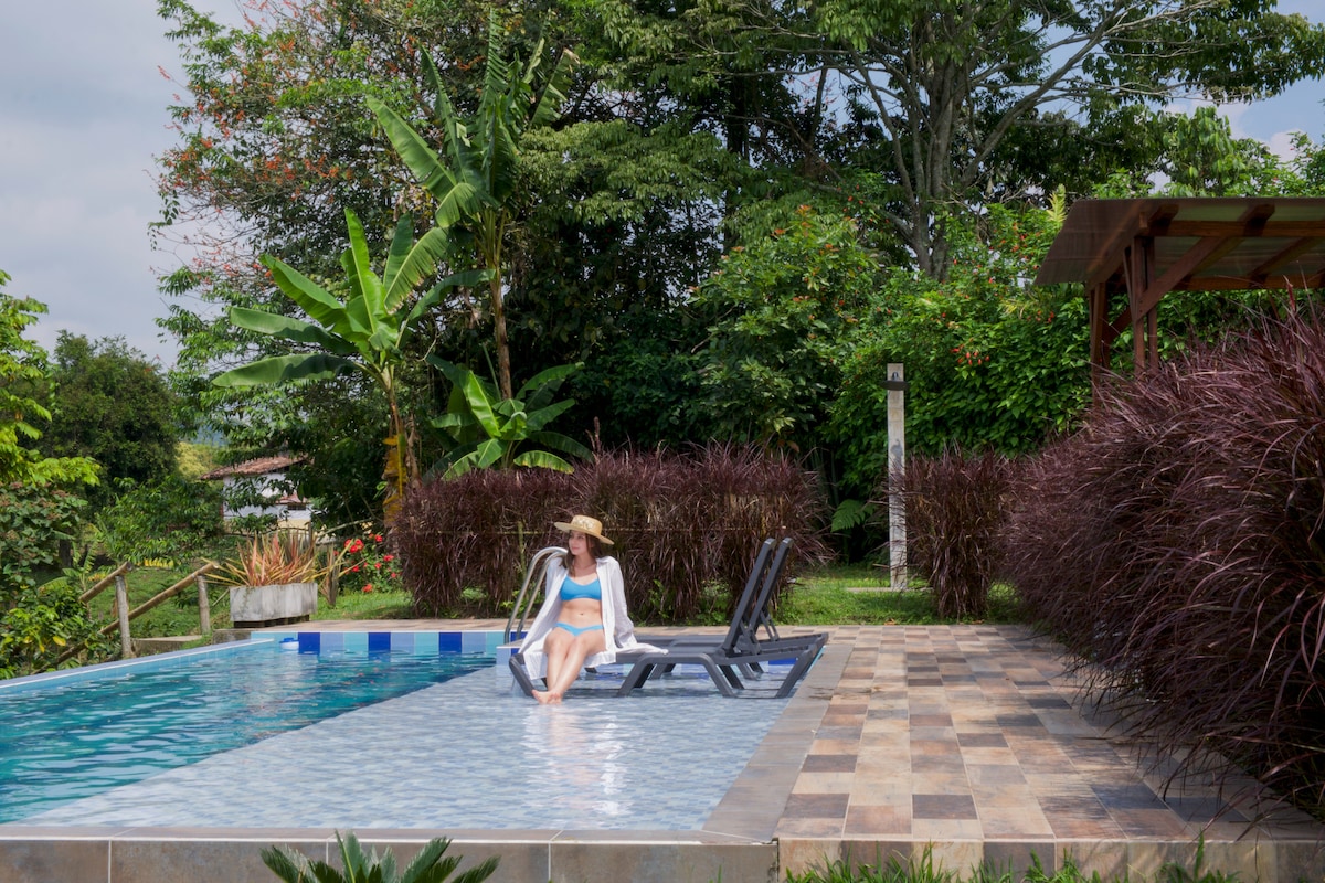 Hotel boutique campestre localizado a 8 km de Pereira sobre la vía Pereira-Armenia Tenemos 6 habitaciones “Standard de luxe” más la suite especial: nuestras habitaciones son amplias con baño y agua caliente, mini-bar , TV , DIRECTV más Netflix e internet WIFI gratis en toda la propiedad. Tenemos una piscina exterior con camillas , un Kiosko con comedor y baños mas una Piscina exterior, zona verde/senderito y una zona húmeda con un Jacuzzy caliente baño turco y baño sauna y una sala de masajes