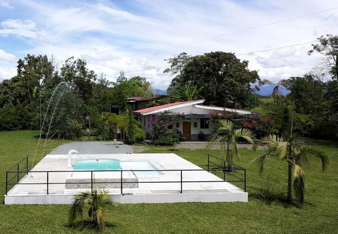 Country House in Pereira, Sector Cerritos, Easy Access. You will enjoy sunny days, tranquility, connection with Nature, and beautiful sunsets. Overlooking a spectacular guadual. Located 15 minutes from the International Matecaña Airport, with an excellent location to places of interest in the Coffee Region; 5 minutes from the best food malls in the city, supermarkets. Perfect place to enjoy with the family. With heated Jacuzzi, BBQ area, wood oven for pizza. Campfire area. Pet Friendly.
