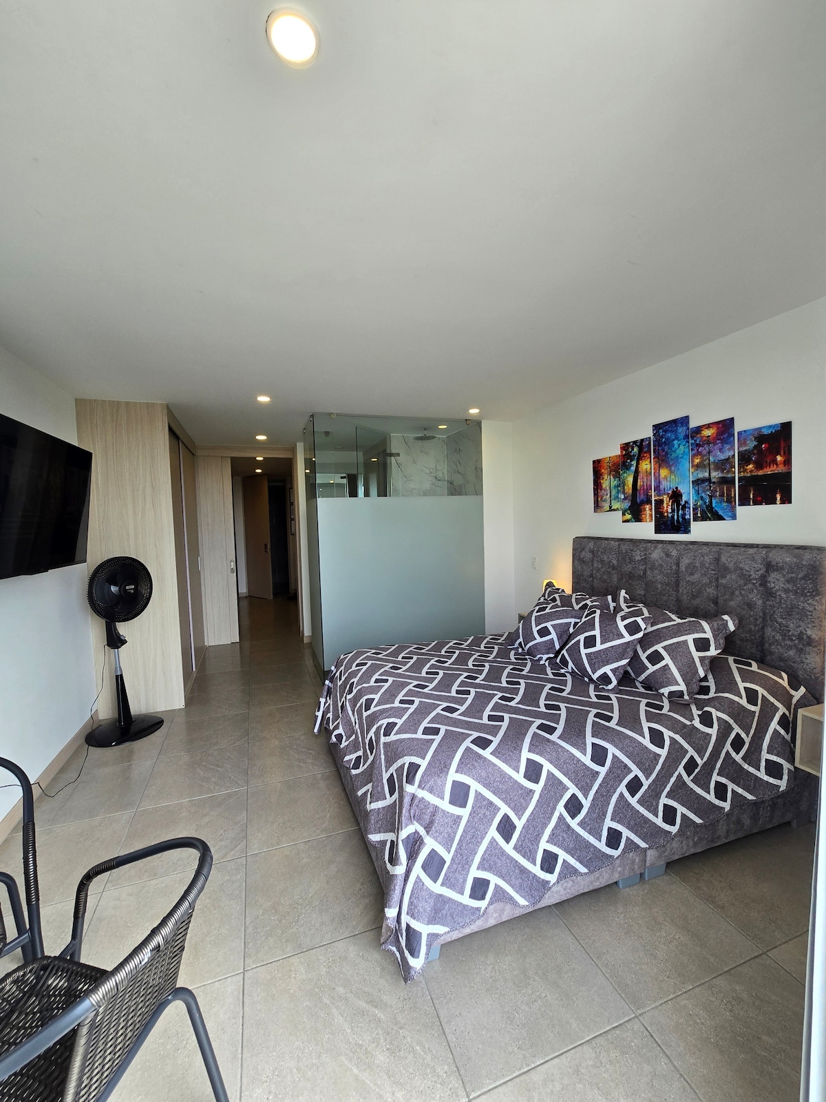 El alojamiento cuenta con una hermosa habitación Disfruta de un espacio moderno y acogedor, con una hermosa vista a las montañas y a la Cordillera Central. Está equipado con todas las comodidades necesarias para una estadía confortable: TV HD, sala, barra americana, cocina totalmente equipada, zona de ropas, baño con agua caliente, wifi y sky lounge. Siempre estaremos atentos a cualquier necesidad que tengas durante tu estadía, para que tu experiencia sea lo más agradable posible.