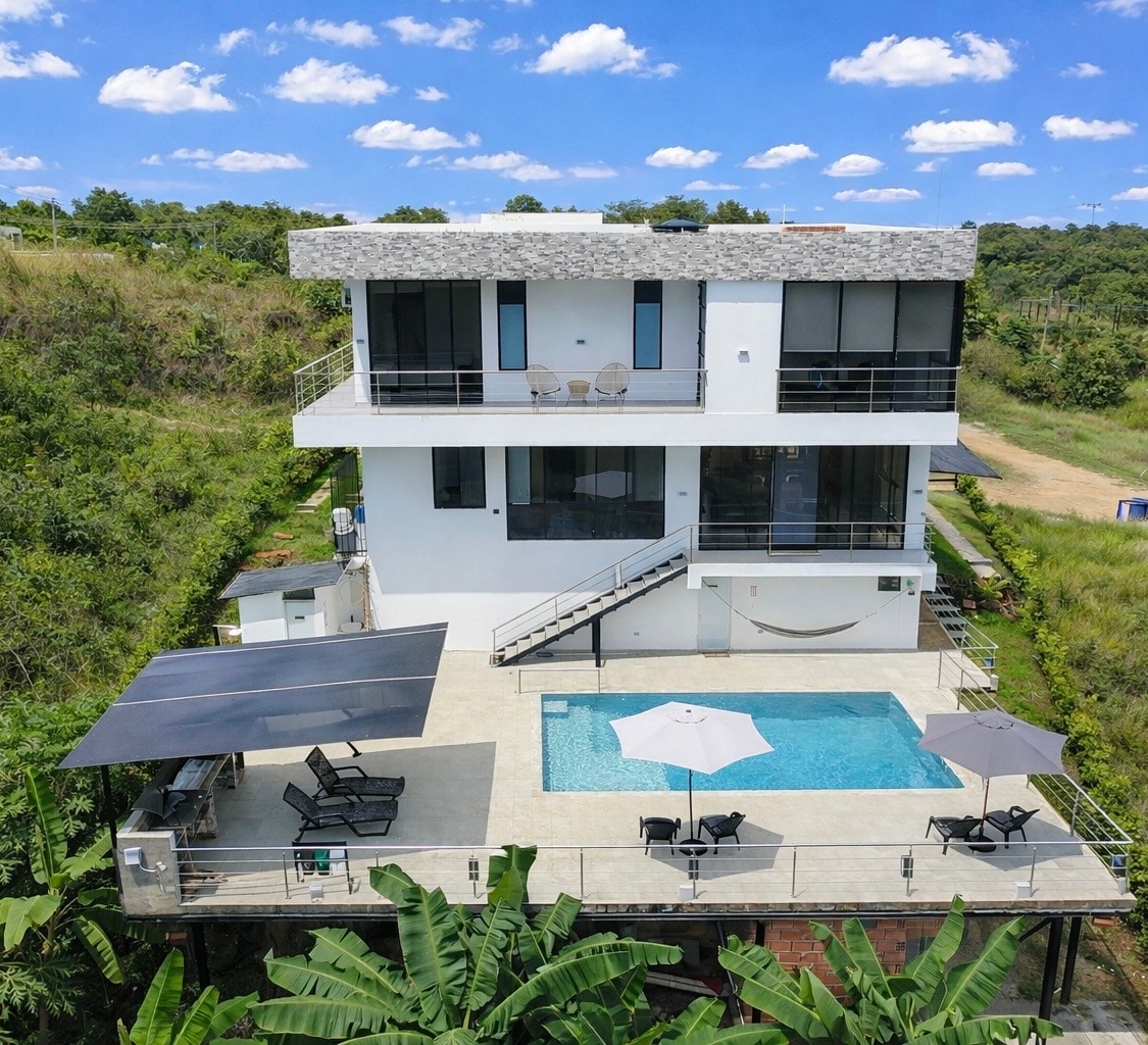 Relájese en esta casa rodeada de Naturaleza y comodidad, excelente vista Villa en Ricaurte Girardot Capacidad máxima para 16 personas - Piscina Privada - Aire Acondicionado - 5 cuartos y 5 baños incluido sociales - Zona BBQ - Accesibilidad para personas con movilidad reducida - Hermosa vista y Naturaleza - Parqueadero privado - Wifi dentro de un condominio cerrado que cuenta con cancha de Tennis, Capilla, Piscina pública, caminatas ecológicas, ciclo montañismo y área Social
