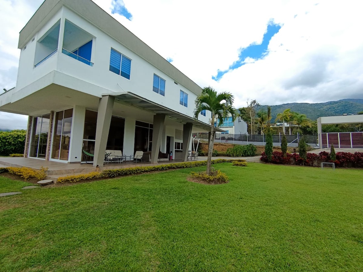 Adorable casa con piscina completamente privada, BBQ a carbón, TV 65" en la sala, NETFLIX, Directv Go, Wifi, parqueadero privado para 2 vehículos, tres cómodas habitaciones con baño privado, dos de ellas con aire acondicionado, además contamos con ventiladores de techo para hacer mas fresco su descanso! Ubicada en exclusivo condominio dotado con canchas de fútbol, tenis, basquet, squash, múltiples y lago.