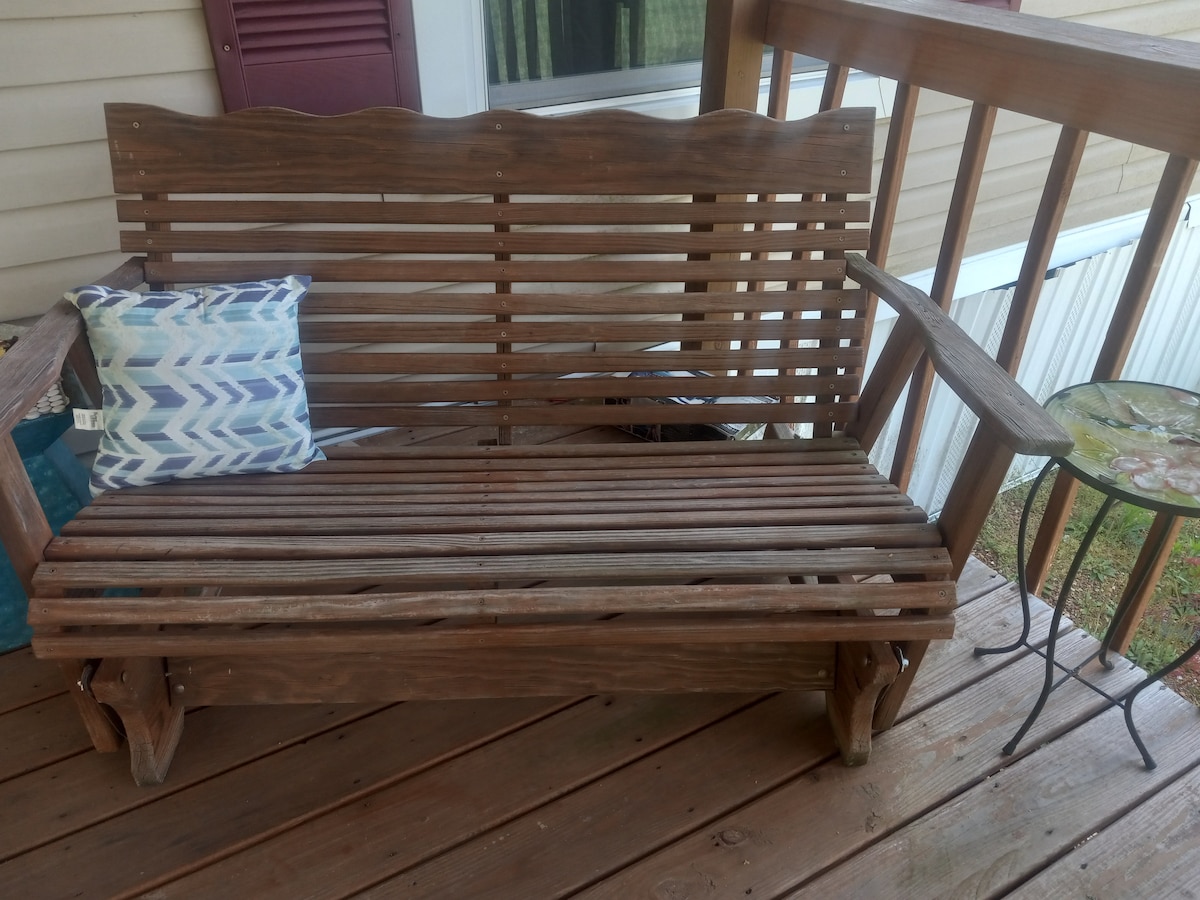 Cozy nest right on the creek. Lots of privacy. Hiking trails and Waterfalls nearby. Listen to the water from a porch swing overlooking the creek. We have a double recliner for movies and popcorn. This efficiency apartment has a private entrance with private covered porch and a full kitchen. Work area with Wi-Fi. Pets are welcome - must be free of fleas and ticks.