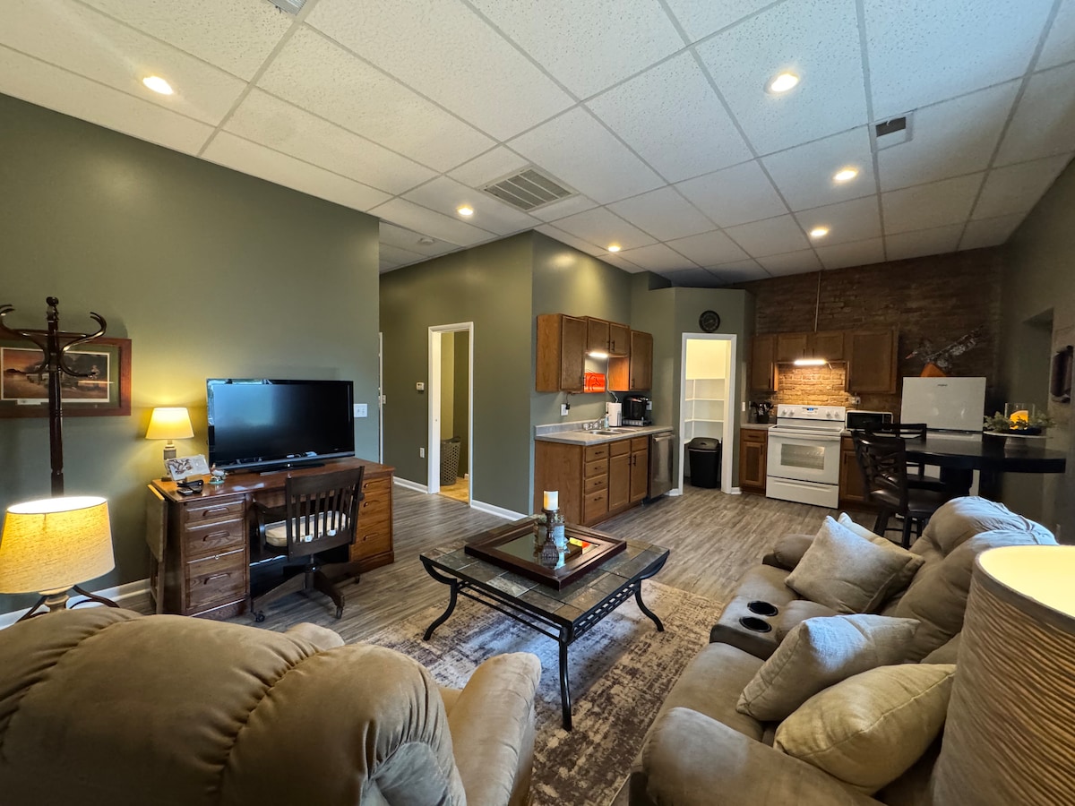Step back in time and settle into comfort at the Millinery Suite. Once home to J.J. Stewart & Co., a late-1800s women’s hat shop in downtown Burlington, this historic space has been reimagined as a bright, stylish apartment. With tin ceilings, tall windows, and turn-of-the-century character paired with modern amenities, it’s the perfect home base for business, a weekend getaway, or exploring Burlington’s charm—steps from dining, shops, and local coffee.