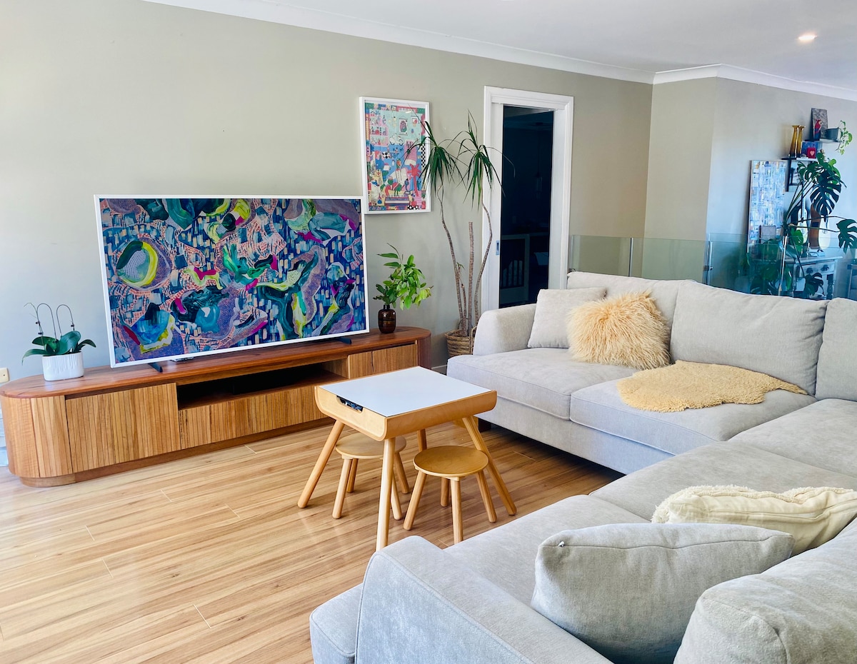 Relax in this calm & stylish space where you can recharge while enjoying the local beach, walks, cafes. Our beach is only a 2 min walk, where you can stroll, swim, surf or fish. The studio apartment is spacious with a very comfortable Queen bed with quality linen bedding. The apartment is part of our newly built main residence but has a separate entrance & is totally private & self contained. We provide a generous continental breakfast for your first night of stay, with cereal, fruit, etc