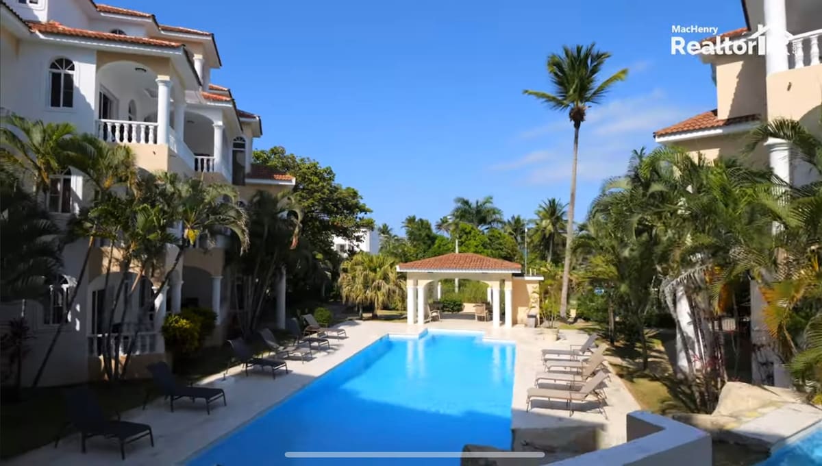 A beautiful and convenient apartment located within walking distance of Ocean World in Puerto Plata, Dominican Republic. This Two-bedroom apartment sleeps a total of 6 and it is inside a private villa. Daily maid service on request and for an extra charge. There is one security guard who is there around the clock and multiple exterior security cameras in front of the villa and pool area. It's steps away from Cofresi beach, restaurants, and well known aquatic park and aquarium, Ocean World.
