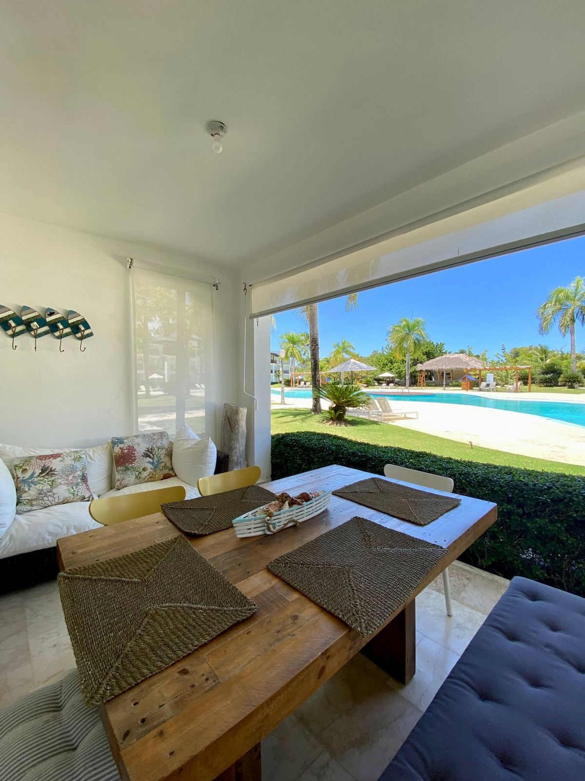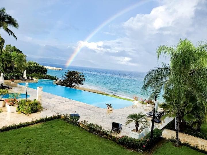 Escape to this NEW Luxurious and Modern Beachfront Condo on Playa Dorada Puerto Plata, Dominican Republic. All needed to enjoy a pleasant, peaceful and safe stay; with direct access to the beach, the double terrace that leads you to the swimming pool, a gazebo and gym; accessible upscale golf campus, restaurants inside the complex, close to shopping center, the international airport, and many attractions like water park, cable cars, historic center, nightclubs and more.