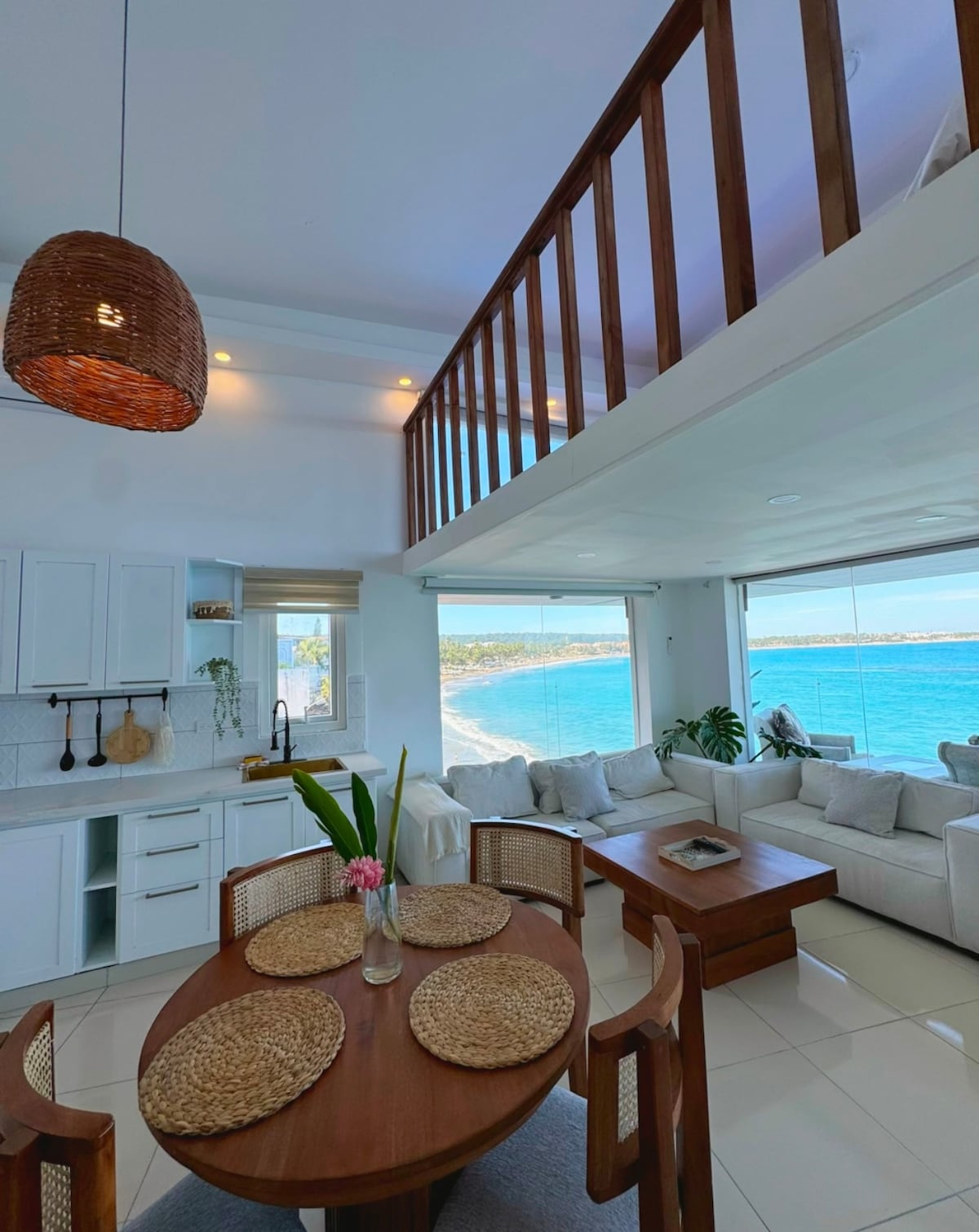 Wakeup to breathtaking ocean views in this stylish one-bedroom with loft. Take in unparalleled ocean views from your wrap around balcony, a fully equipped kitchen, and wake up to an unforgettable view from the one of a kind loft. Nestled in the towns central location directly on the beach of Cabarete. Just a few minutes walking from the towns lively restaurant, bars, and shops. Enjoy the convenience of an on-site restaurant, spa, and gym.