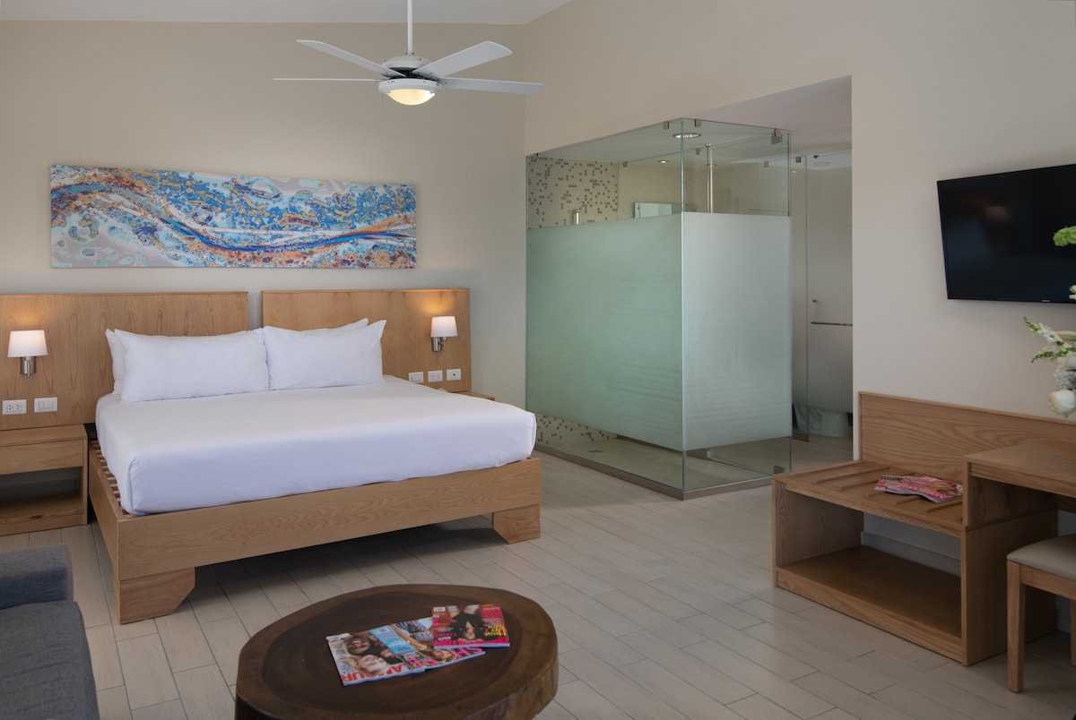 Deluxe Suite – at Península Esmeralda Luxury Hotel & Villas Experience premium comfort in our Deluxe Suite, featuring a spacious bedroom, elegant decor. Enjoy a private, tranquil retreat with access to shared luxury amenities—full kitchen, living room, terrace, pool, and beachfront areas. Perfect for guests seeking style, privacy, and the best of Caribbean living.