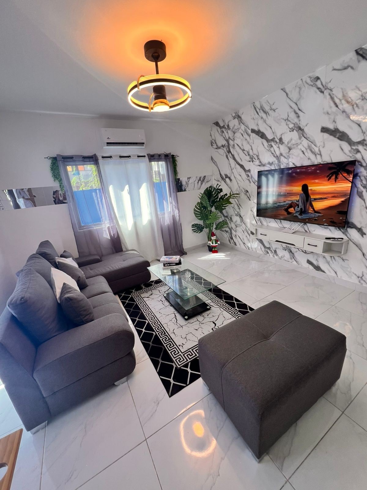 Brand-new apartment offering you exclusive access to a private rooftop paradise with panoramic views of the Puerto Plata hills from our Picuzzy. Dive into relaxation in the pristine pool, a hidden gem for our guests, and the sun-kissed Playa Dorada beach is 5 minutes away. Inside, you'll discover three spacious bedrooms, each equipped with refreshing air conditioning to ensure your comfort. The expansive living room is your cozy haven for memorable movie nights and quality time with loved ones.