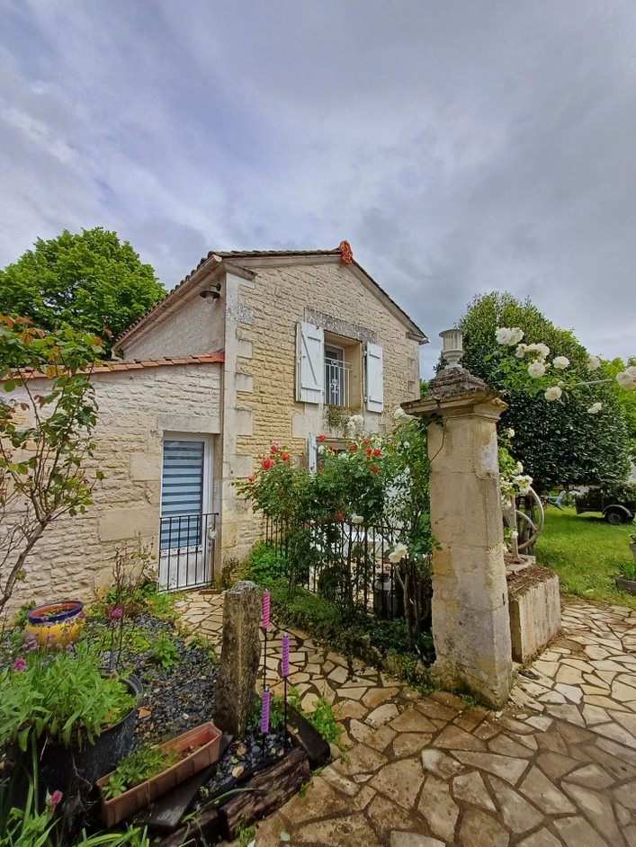 Dans un hameau très calme, en Charente Maritime, une petite maison ancienne restaurée mais gardant son authenticité et son histoire, située dans un vaste jardin fleuri et tranquille, au cœur du vignoble sur le circuit des églises romanes. Patio couvert avec salon de jardin et transats. Jardin privatif aromatique et vaste terrain : badminton, jeux de ballon, croquet. English and German spoken