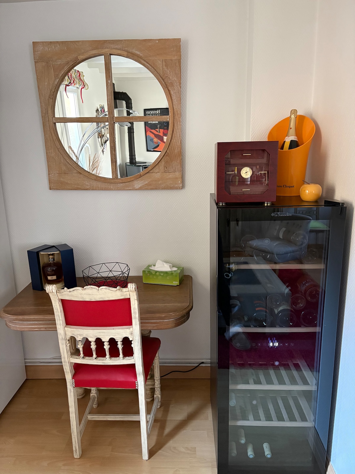 This unique accommodation is close to all sites and amenities. One of the main assets of this accommodation is its picturesque terrace. Located high up, it offers a breathtaking view of the rooftops of Cognac, offering a breathtaking panorama. But that’s not all, because this terrace also allows you to admire the Saint-Léger church, an architectural jewel of the region. The view of this historic church adds a touch of character and authenticity to this property.