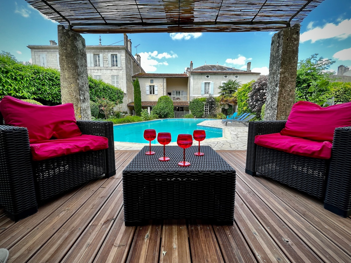Charming gite classified 4 stars in Charente Maritime. Winter by the fire, summer by the pool ! We offer 3 Gites within the Logis des Chauvins including the one Côté Piscine. The 18th century Logis is located in the heart of a green park of one hectare approx. It is situated in Port D'Envaux, a former shipowners' village. Its particular situation on the edge of the Charente river gives it a particular attraction, numerous hikes, swimming, nautical activities... at 3 mn walking distance...