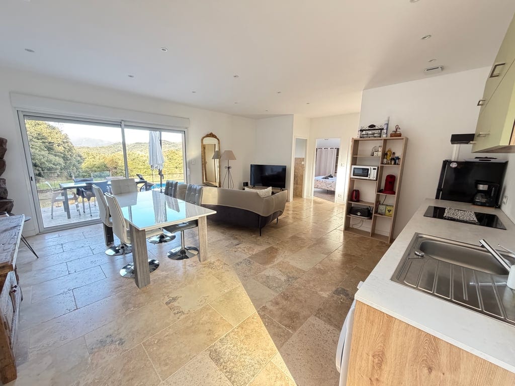 Sur les hauteurs de Porticcio, au calme, dans villa neuve T3 de 93M2. 2 chambres avec lits de 160x200, téléviseurs 2 salles d'eau doubles vasques, grandes douches à l'italienne, 2 WC séparés Dressing Cuisine aménagée et équipée : four, M.O, plaques induction, réfrigérateur américain, L.V, lave-linge, sèche-linge Salon avec téléviseur grand écran Terrasse 40M2 avec salon, barbecue, SPA A disposition : linge de maison, produits d'entretien, matériel puériculture, jeux société, jeux d'extérieur...