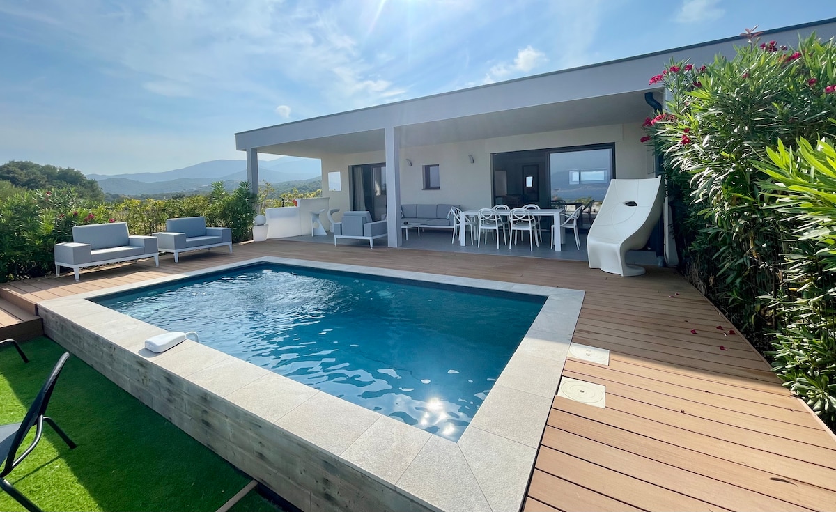 科西嘉-带有海景和恒温游泳池的别墅