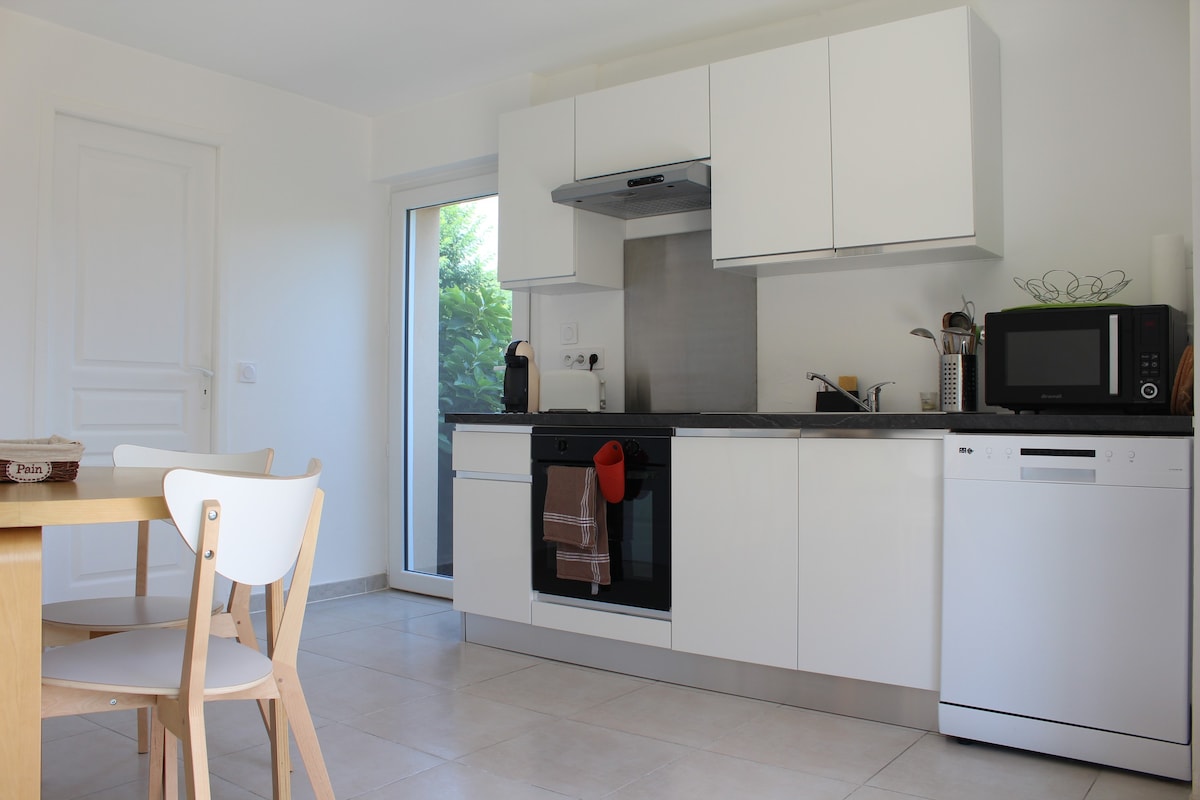 Apartment with private parking in Provençal villa ideally located at Cogolin limit Grimaud in the heart of the Gulf of Saint-Tropez. All tourist activities and amenities 5 min by car. Charming independent T2 of 36 m ² , in a green frame. Any comfort, equipped kitchen, open on space to live, bright and nice, room of water with toilet, independent room, a terrace 12 m2 with barbecue. Ideal to discover the Gulf of Saint-Tropez, its mountains, as well as the beaches.