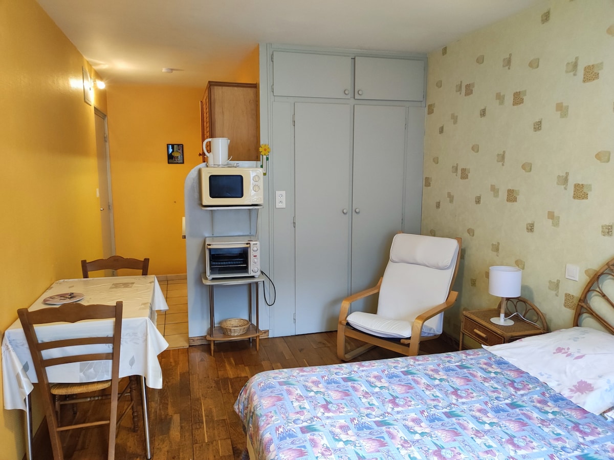 I am happy to present to you my magnificent apartment located 200m from the thermal baths, on the ground floor. It can accommodate up to 2 people, ideal for couples or family vacations. The apartment is fully furnished and equipped with all the necessary comforts for a pleasant stay. You will appreciate the outdoor green space.
