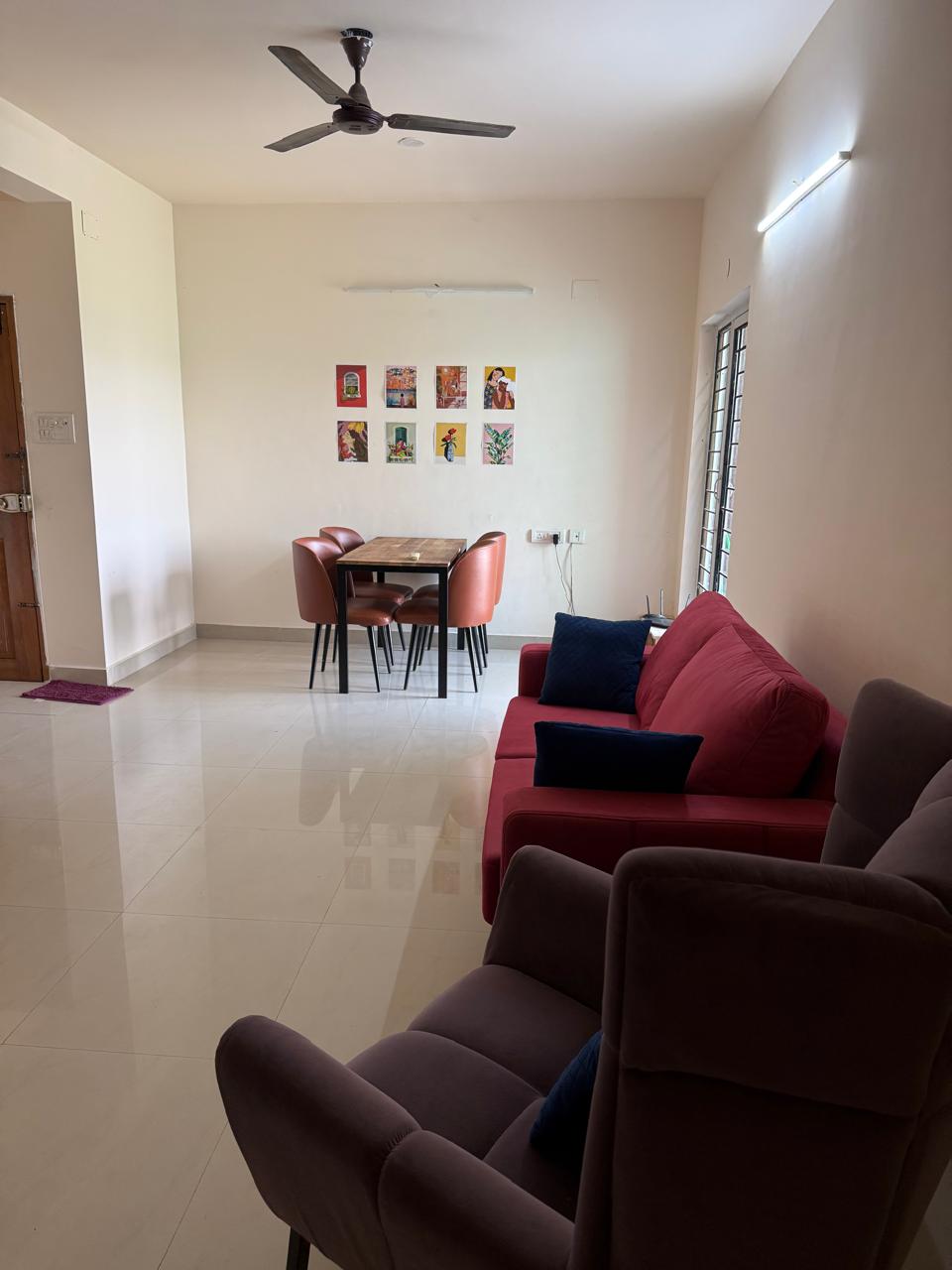 Fully furnished 2BHK apartment located close to the airport. Prime Location: Situated near the airport and IT park. Work Ready: High-speed Wi-Fi and a dedicated workspace for digital nomads. Comforts of Home: A fully equipped kitchen, AC in all bedrooms, and a smart TV. The Space: A spacious living room with cosy bedrooms featuring fresh linens, and a clean, modern bathroom. Guest Access: You will have the entire apartment to yourself. We provide secure parking and 24/7 elevator access.