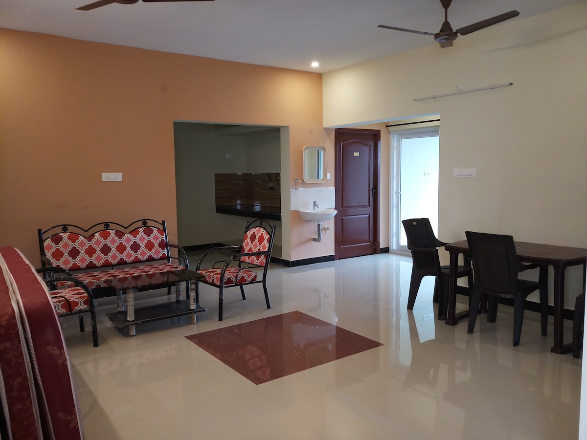 Shantham Service Apartments is a three-storied property with all the facilities required for a comfortable stay on budget. Located on a 4 lane national highway on Pollachi Main Road, next to Vivek Vidyalaya School, Kinathukadavu, Coimbatore. From 24/7 Free Wi-Fi, AC rooms, Non-AC rooms, LED TV, Coffee/Breakfast, to ample parking space – we have all the basics covered, making it most suitable for business travelers, tourists, students who are coming to Coimbatore for short and long stays.