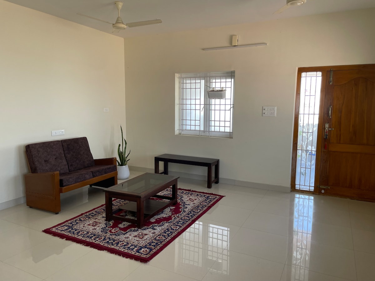 Enjoy a bright and airy 1 BHK in the heart of Coimbatore, just 50m from ESI Hospital. Singanallur is 1 km, Hope College 2 km, and PSG Tech 4 km away. Relax in a calm, convenient neighbourhood with all essentials nearby. If you need an extra bed, reach out to me. P.S: No smoking inside the house