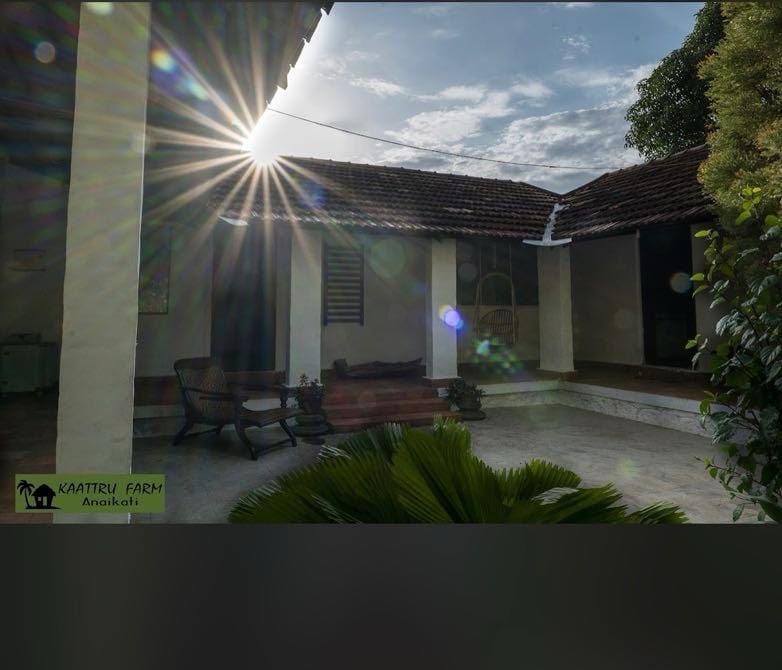 Wake up to the beautiful sounds of the birds and treat yourself to the blissful view of the Western Ghats. Spend the day with a book by the waterfall or explore the nearby riverside. Perfect atmosphere for treks. Ideal for those wanting a break from the hustle of the city life. Delicious home cooked meals can be provided. We live here with our two sons and love to share our experiences with you. We are about 40 kms from Coimbatore. Pick up and drop and local tours can be arranged on request.