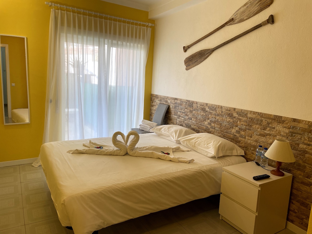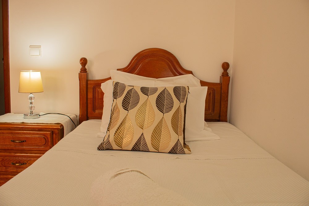 Dit appartement is een van de 3. In deze kunnen maximaal 4 personen overnachten. Er is een slaapkamer met een tweepersoonsbed, een eigen badkamer en een huiskamer met o.a. een bedbank en een eettafel, wifi, televisie, airco, koelkast, magnetron serviesgoed en koffie/ en theefaciliteiten. Op de gedeelde veranda staat een eigen zitje en heb je uitzicht over de tuin, het zwembad en de mooie Igreja Matriz. In de tuin is o.a. een zwembad en een picknickplaats met barbecue.