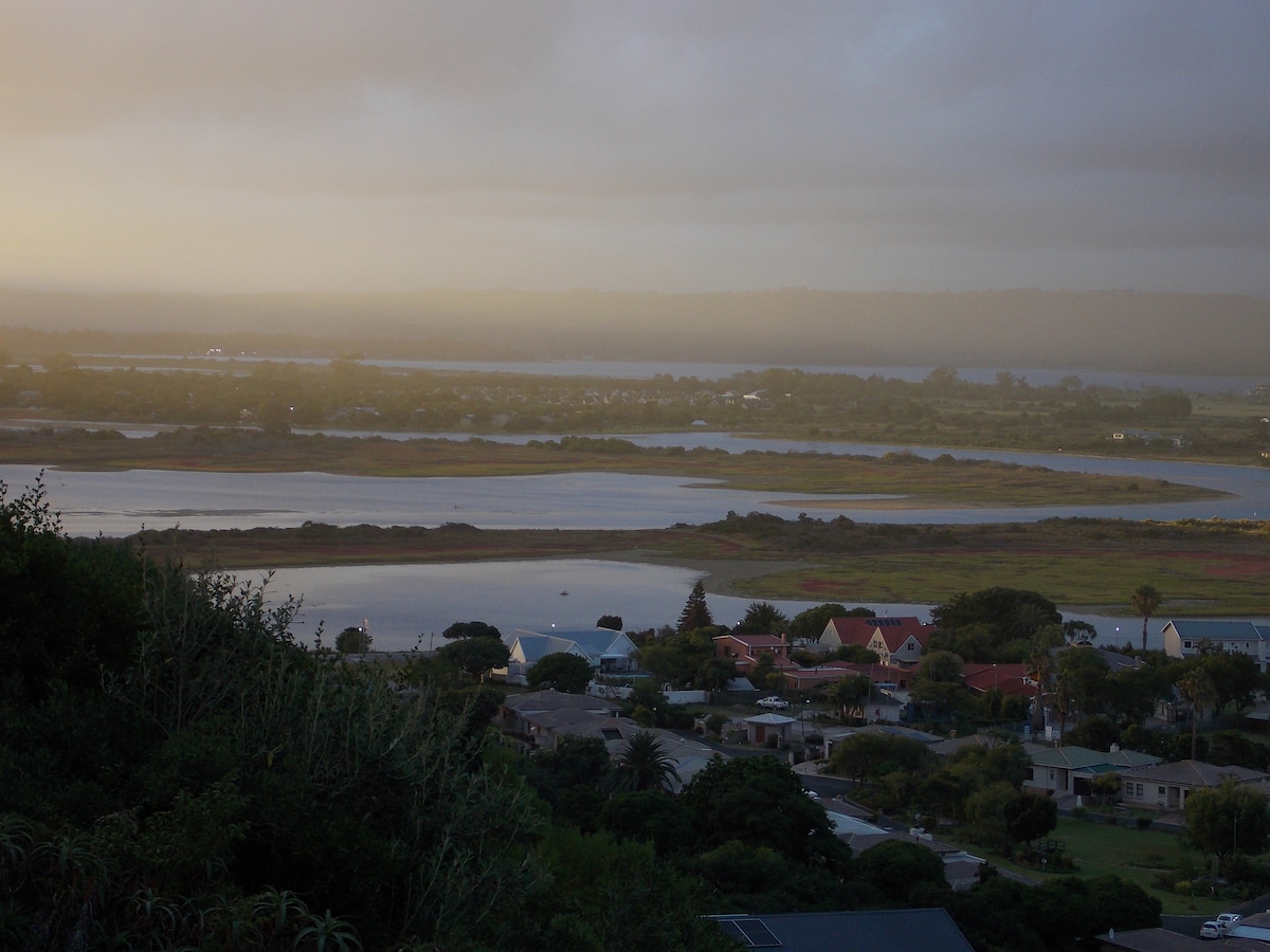 Fully equipped, private self catering cabin in Knysna, walking distance from shops and restaurants. Beautiful big spa bath and lovely view of the lagoon. Well equipped kitchen and great coffee station. NO MORE LOAD SHEDDING WITH OUR SOLAR BACKUP!! Full DSTV, Netflix, fast Fibre Internet, gas and wood grill and a small fire pit. Totally private - making it a perfect space for a romantic getaway. We’ve got two Boxer dogs that will share the garden space!! Sorry, no kids and infants allowed.