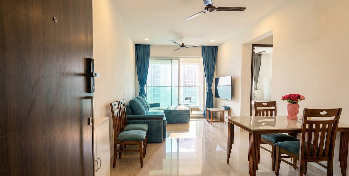 Experience the perfect blend of luxury and comfort in this beautifully spacious 2-bedroom apartment. Ideal for business travellers & visitors to BKC, the apartment offers a serene atmosphere with beautiful tree-lined views from every window – your tranquil retreat in the city that never sleeps. Centrally located, this contemporary haven promises a relaxing environment while you explore Mumbai. The apartment is: - 8 minutes to the Domestic & International airport