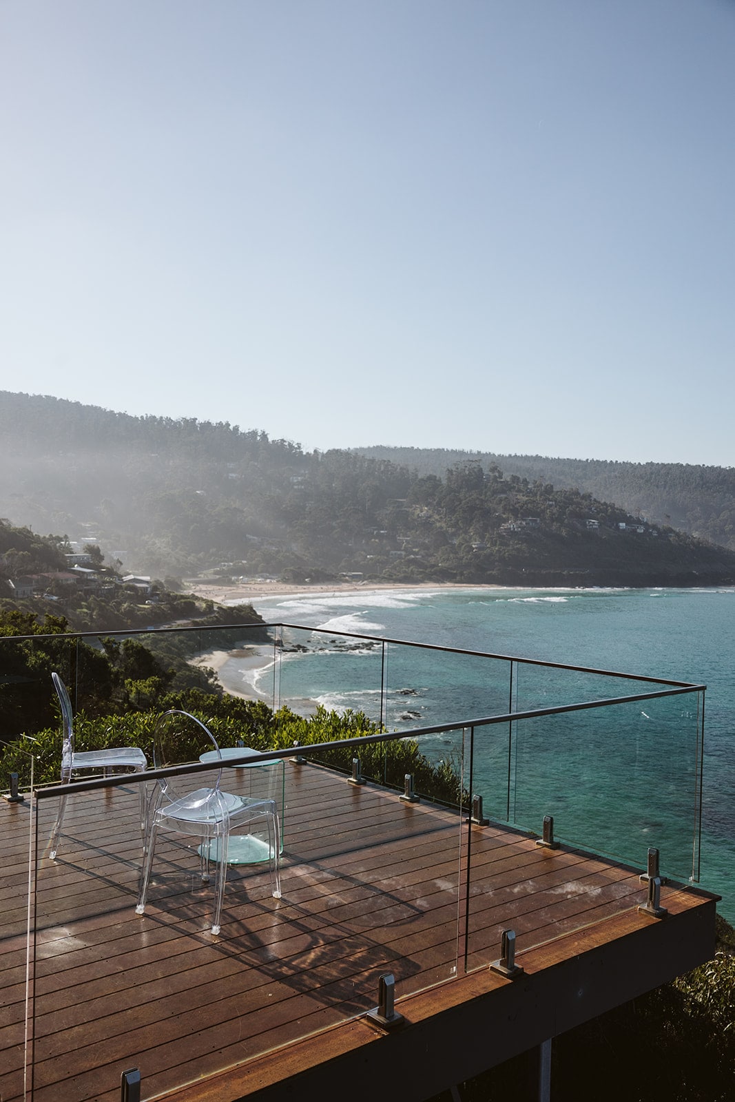A coastal retreat for discerning couples who enjoy absolute luxury. This Contemporary Architectural House at Skenes Creek (18.00 squares) has: * Extensive indoor/outdoor entertaining and living areas. * Breathtaking views overlooking Skenes beach * Netflix, Stan, Spotify on LG 50" TV. * Daikin Multi head reverse cycle Air Con. * 6 jet spa bath in main bedroom en suite. * "WeberQ" BBQ on the balcony * Huge deck area. * A selection of DVD's. * Nespresso coffee machine and coffee