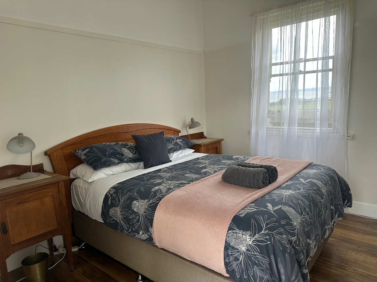 The Maids Quarters is fully self contained and private apartment offering 75 sq mtrs of living space, beautifully decorated, with two queen size bedrooms, fully equipped kitchen, beautifully appointed bathroom and separate living /dining. Located in the south wing of Coragulac House, situated on 140 acres of rural farmland, overlooking beautiful gardens, rolling hills with native wildlife offering the serenity of a truly peaceful country life style in this magnificent Bluestone Homestead.