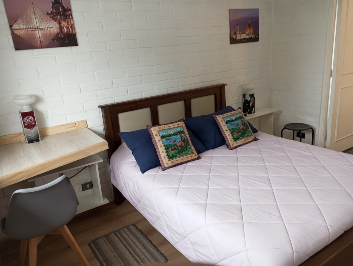 Acogedor alojamiento ideal para descansar y disfrutar. Cuenta con una habitación privada con cama king (futon para 2 personas ) televisor y escritorio, un patio amplio con árboles También podrás relajarte en la tinaja o en nuestra piscina compartida disfrutar en el bar y área de asador. La cocina equipada está disponible para preparar tus comidas. Perfecto para desconectarte y vivir una experiencia única en un ambiente tranquilo y cómodo. ¡Te esperamos!