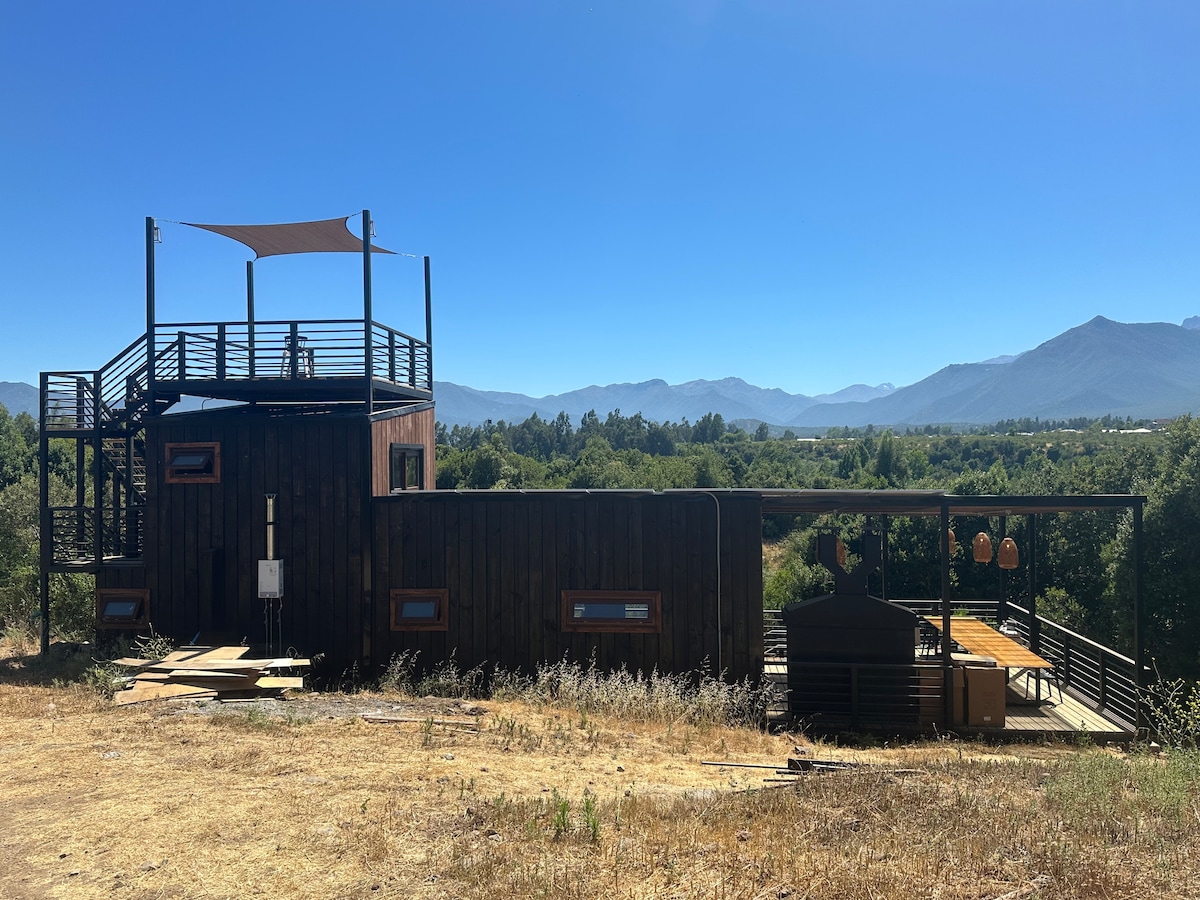 Refugio con Vista Panorámica al Valle Despierta cada mañana con una vista privilegiada del valle, rodeado de un entorno natural que invita al descanso y la desconexión. Lo que ofrecemos: Espacios cálidos y confortables para un descanso pleno. Jacuzzi al aire libre para disfrutar bajo las estrellas. Fogón perfecto para compartir historias o una copa de vino. Entorno natural que invita a caminar, respirar profundo y reconectar.