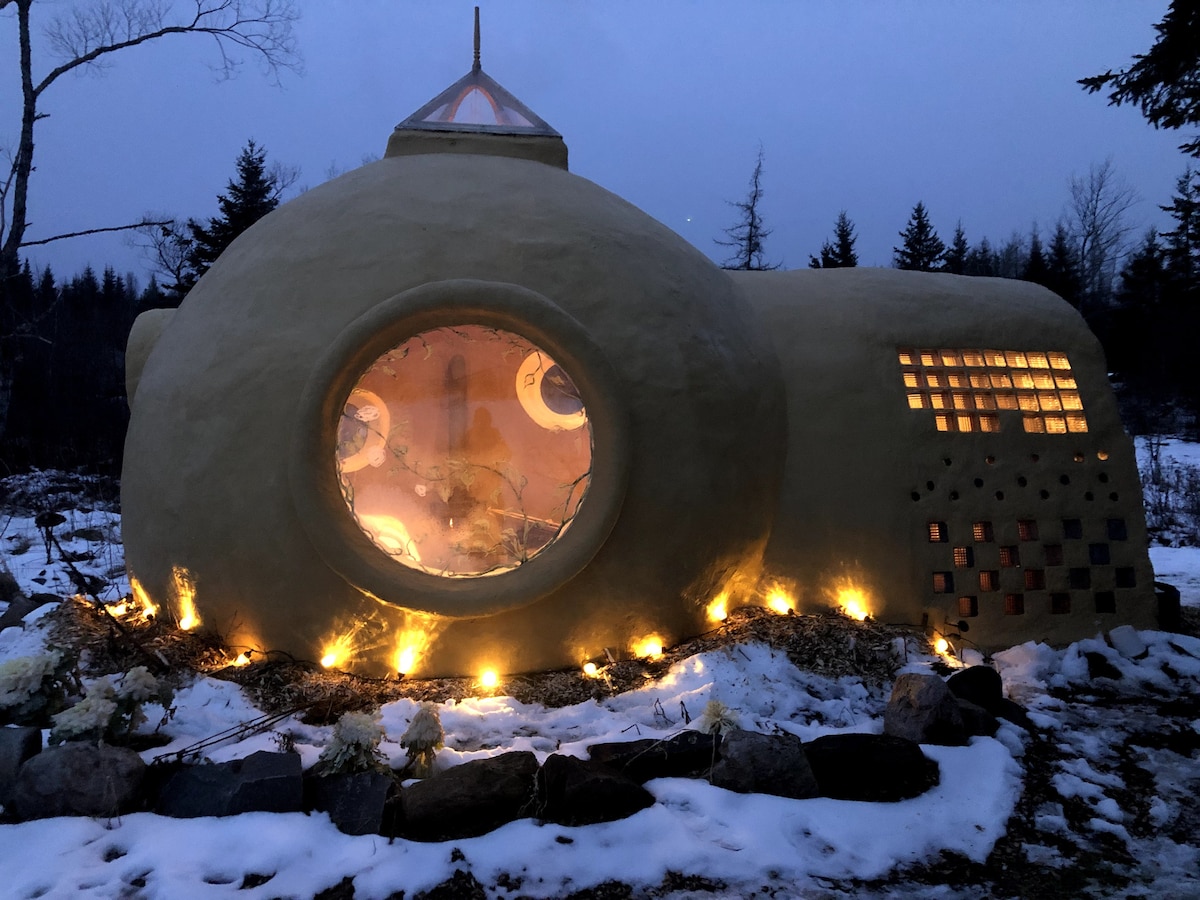 Creative, unique and cozy. This dome is made from aircrete and is finished with clay plaster and an earthen floor. It is a piece of art in every respect and is sure to inspire. It has everything needed to cook food, be warm and sleep deeply as well as nearby hiking and skiing trails leading to rivers and cliffs. It is heated by a wood stove or electric space heater and has a outdoor composting toilet and a shared indoor bathroom. Come enjoy the only dome of it's kind in the whole country!