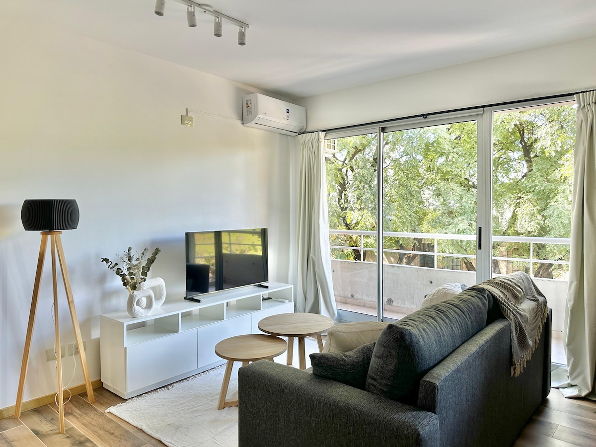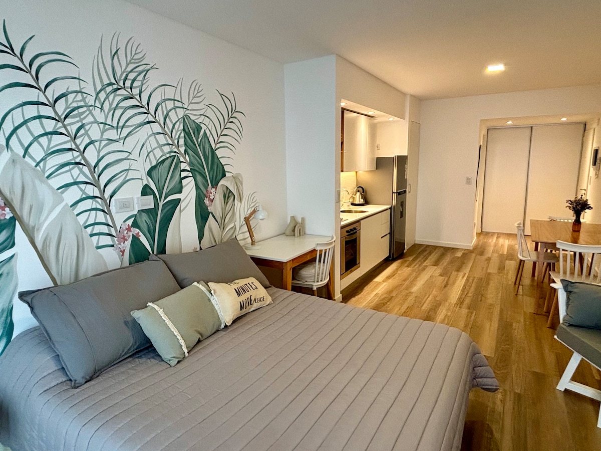 Brand new studio apartment with a full kitchen, bathroom, and balcony offering great views in the heart of Palermo Hollywood. Full of natural light! Modern decoration, fully equipped, and secure. SmartTV with cable and Netflix (login with your account). The building offers excellent amenities: heated indoor pool, outdoor pool with solarium, spa with massage room and sauna, gym, chill-out terraces, meeting room, and BBQ area. Walking distance to top restaurants, bars, cafes, and public transport.