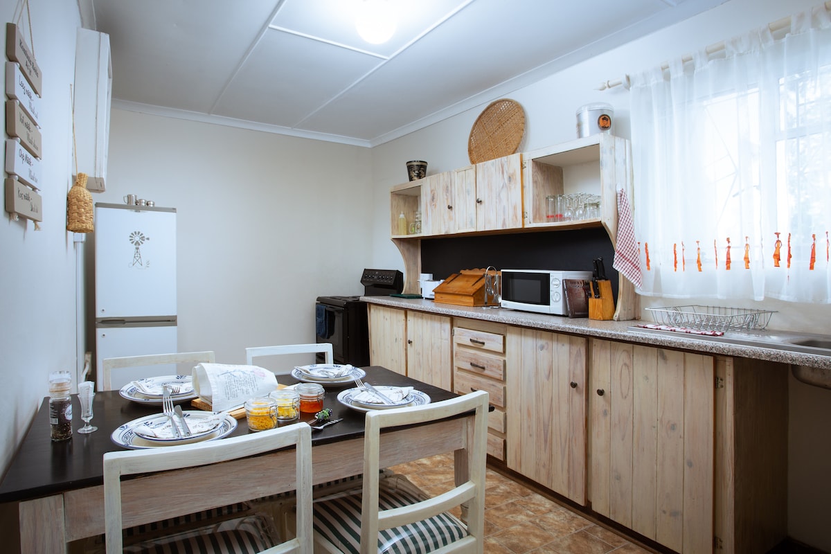 Your home away from home. Jean is separate from the main house. Mini kitchenette. Fridge / freezer. Microwave. Induction plate top. Air conditioned. TV with DSTV package.