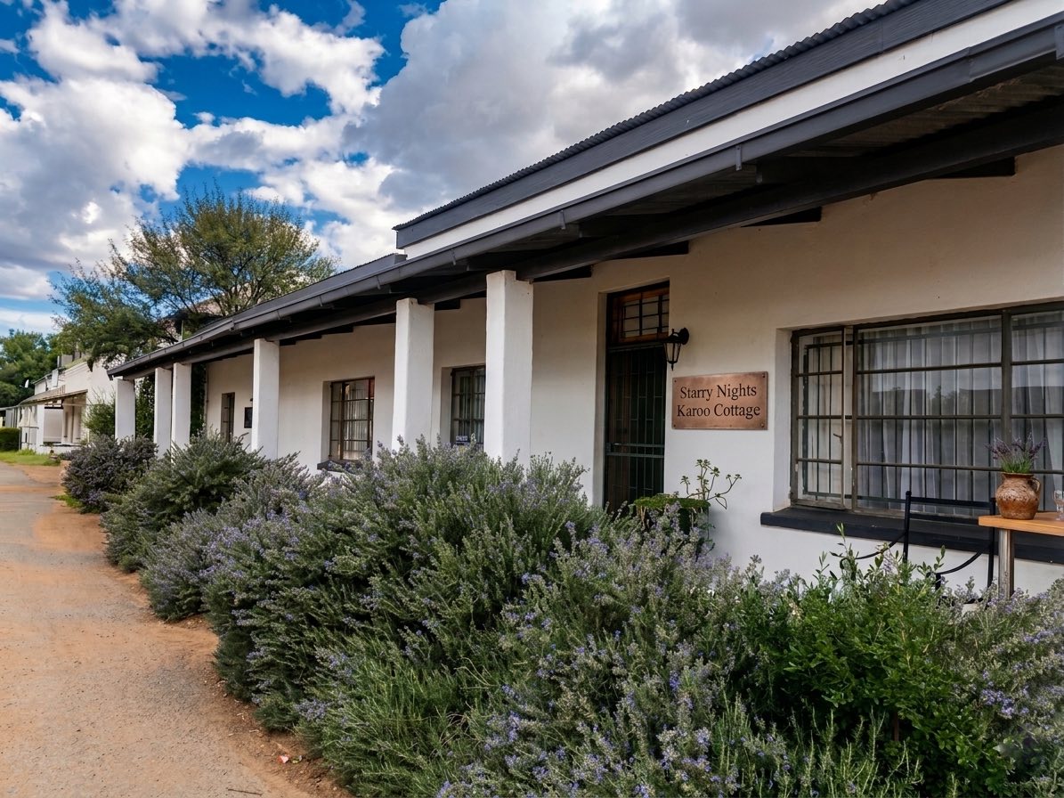 The beautiful decorated luxury farm style cottage is an open plan self catering unit complete with fire place, a fully equipped kitchen, queen size bed, bathroom with shower. A large stoep with breathtaking views, private garden and access to the pool at the main guesthouse, Karoo Pandok. It is also pet friendly, fully fenced but we do charge a fee of R75.00 extra per pet which is payable on arrival. Please discuss with your host.