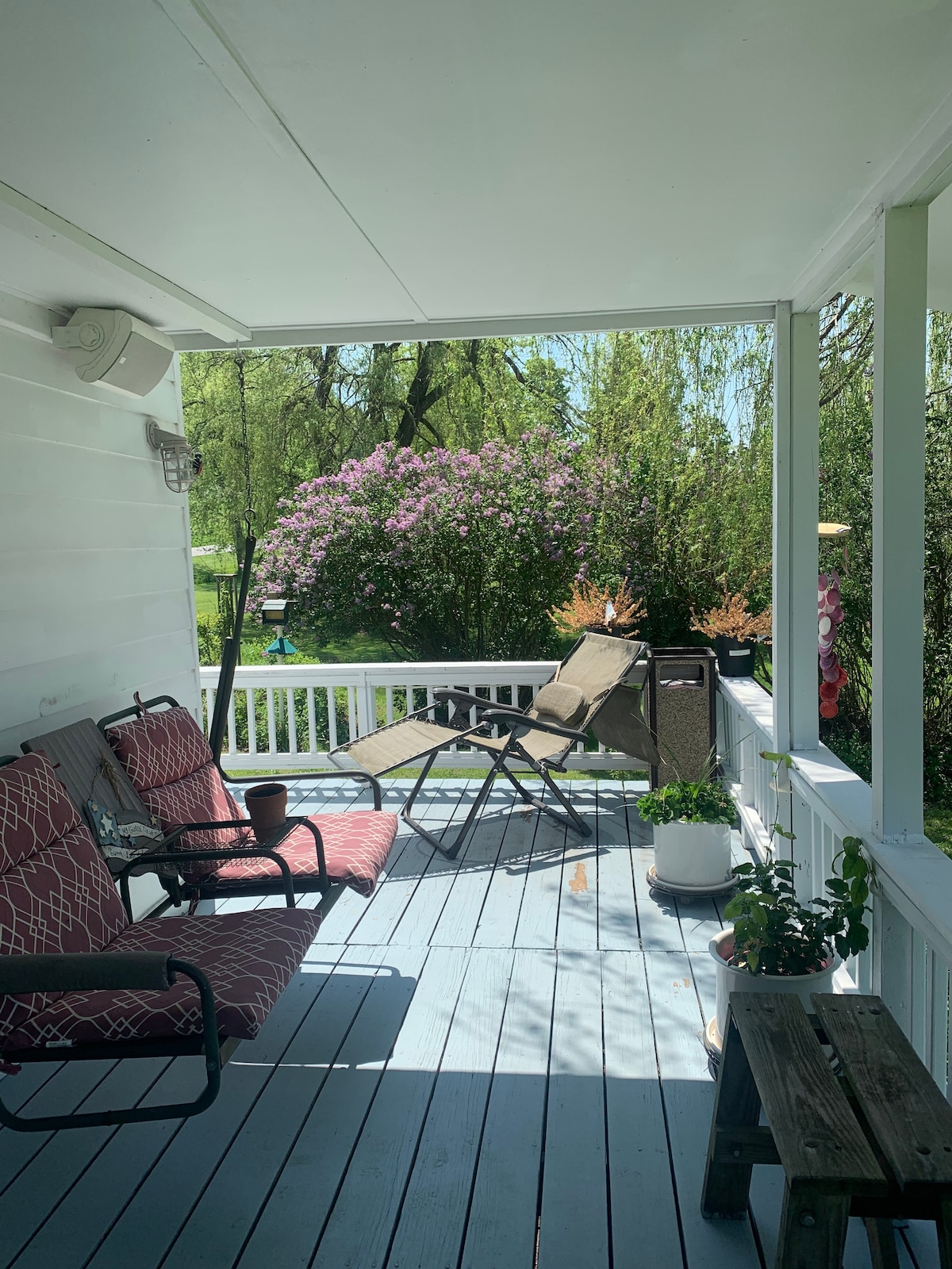 You will enjoy the Peace and Quiet here! Enjoy watching the Horses out to pasture. Explore the many miles of State Forest. Horse & Hiking trails right down the road and Connect with Nature. Take some time to enjoy the Swing in the Flower Garden this Spring and Summer. Relax, watch and listen to the many birds here. There is a Complete Kitchen for you to cook meals. Organic eggs are in the fridge for you to enjoy from our free range chickens. Close to Colgate/Morrisville/Hamilton Colleges.