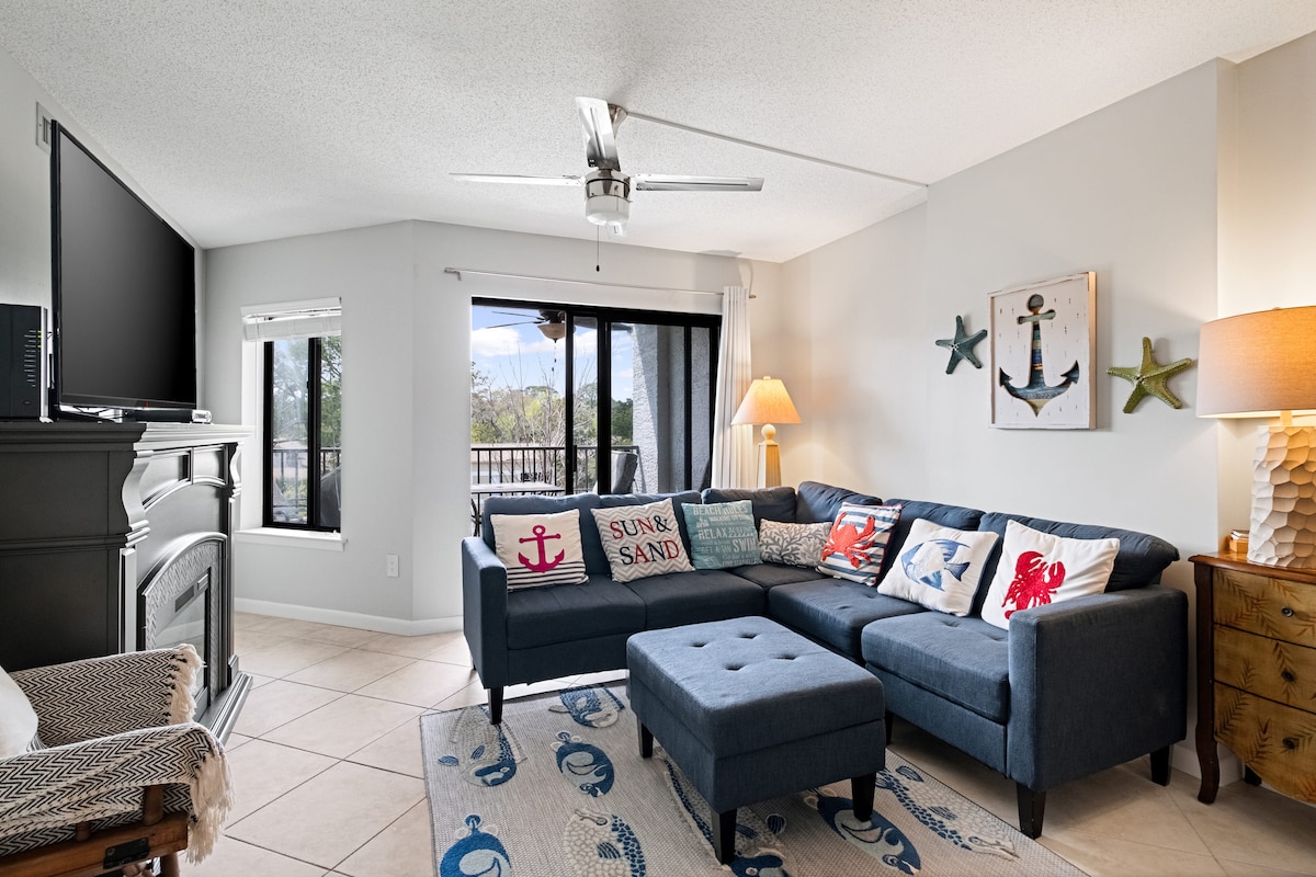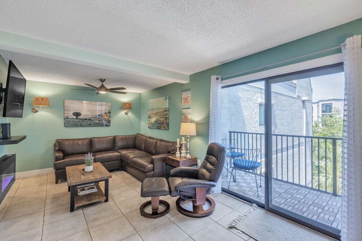 Nicely updated villa located on HHI's South Forest Beach, near Coligny Plaza. This brightly decorated, 1,210 sq ft villa is on top floor (5th), 2 bedrooms ( 1 king, 2 queen beds), 2 baths, and a full size pull-out sofa in the den. Spacious inside can be divided for two families. OceanWalk has 2 pools-outdoor & indoor, hot tub, tennis and pickball courts. A quick 5-7 minute walk to beach, directly across the street. PLEASE NOTE: Indoor pool area closed 6/25-7/30.