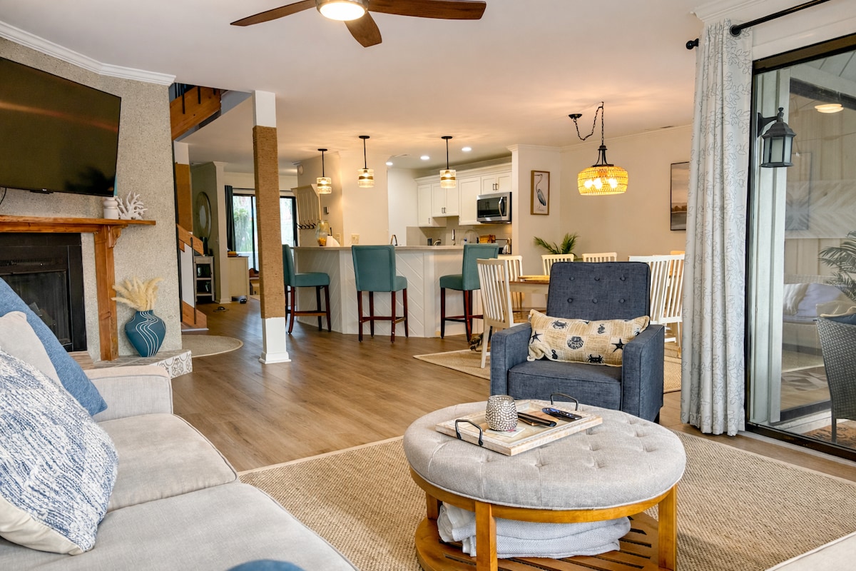 Welcome to 4 Beach Arbor, a bright, pet-friendly retreat in South Forest Beach! This 2BR/2.5BA gem boasts an open main level with a fully equipped kitchen, cozy living area, and balcony overlooking a serene courtyard. Upstairs, enjoy a king suite with a private balcony and a guest room with bunk beds. Just steps from Coligny Beach, Celebration Park, and top attractions, it’s perfect for biking, dining, and fun. Book your stay and unlock the ultimate Hilton Head adventure with MyStay!