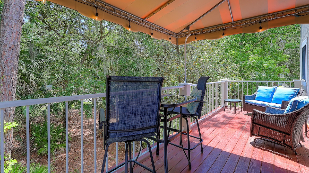 Waterfront and sunset views abound in this unique "treehouse", with 360 degree views. On Deer Island, just steps from the Harbour Town Lighthouse, known for its' large-boat marina, restaurants, shops and Golf Club, host of the RBC Heritage Classic, PGA Tour Event. Enjoy all the amenities of Sea Pines, including the South Beach Marina, Sea Pines Beach and Salty Dog Cafe, only 3 miles away, serviced by trollies & bike paths. Enjoy the sunset seated around the firepit. Gas grill with a view
