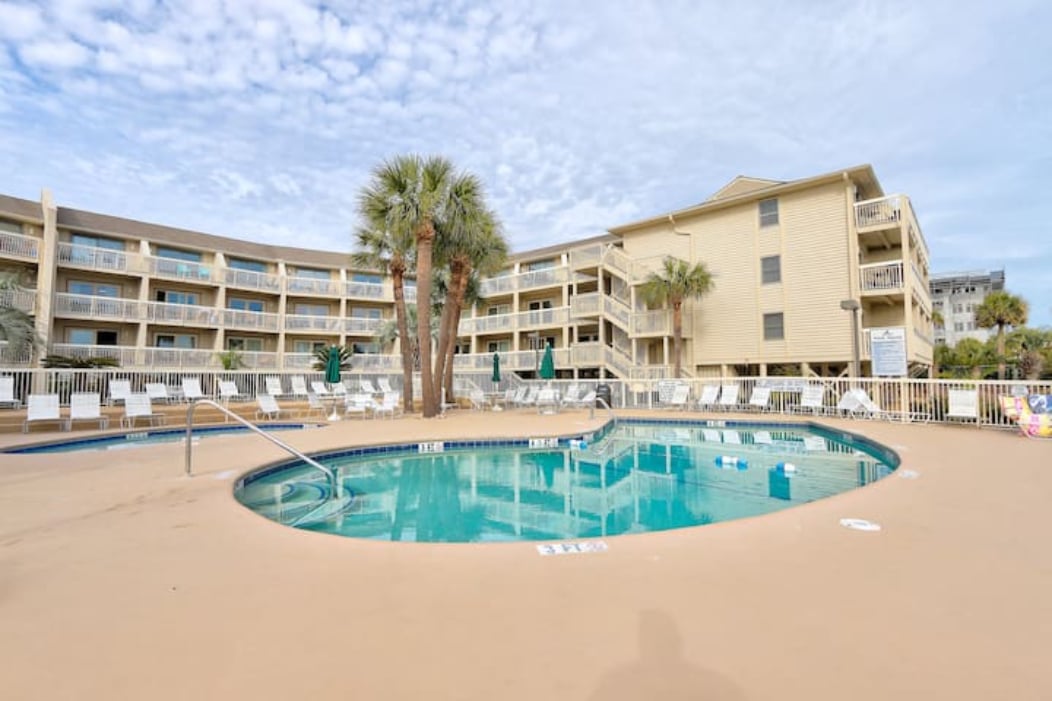 Make yourself at home in this comfortable 2 story, ground floor Condo. Easy walk to the beach. Open concept living, dining and fully equipped kitchen and 1/2 bath on main floor. Chose either the comfy King or Queen bedroom with walk-in shower or bathtub of your choice. Private courtyard with Grill and outside seating. All this, in a setting of azaleas, palms and 20 steps to pool with stores and restaurants just 2 blocks away. Please note there is only 1 parking space available for your stay.