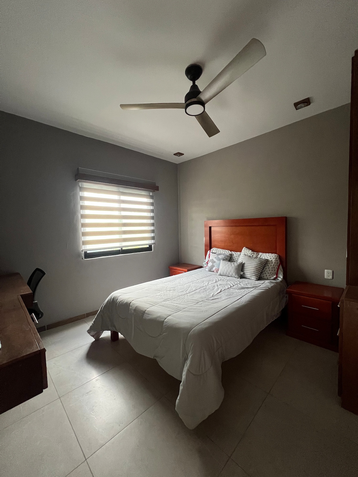 Casa moderna y elegante en la exclusiva zona norte de Villa de Álvarez, diseñada para el confort y la convivencia familiar, con una ubicación privilegiada que combina tranquilidad y cercanía a parques, areas verdes, restarantes, gimnasios. Ideal para familias ya que cuenta con 3 habitaciones, una en planta baja con baño completo ideal para personas de la tercera edad o para uso de oficina. Cuenta con AC en las 3 habitaciones solamente. AC DE LA SALA DE ESTAR NO ESTÁ DISPONIBLE.