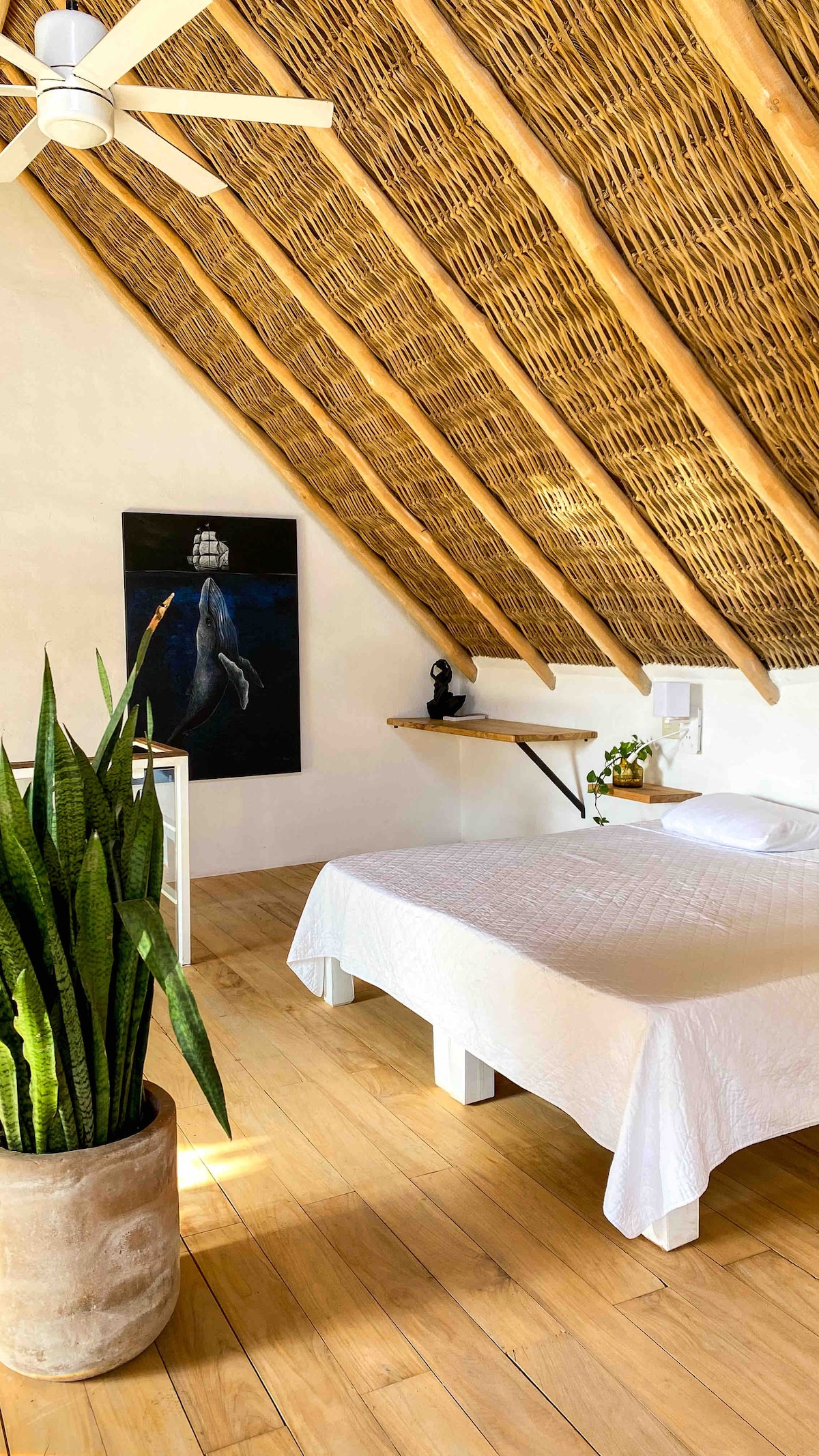 Desconecta de tus preocupaciones en este espacio tan amplio y sereno. Disfruta de su alberca climatizada, sus áreas comunes, si su amplia terraza con sus panorámicas y hermosas vistas al mar y al pueblo de La Manzanilla. El Loft cuenta con cocina completamente equipada, tv, aire acondicionado, y un amplio balcón con vista a la alberca.
