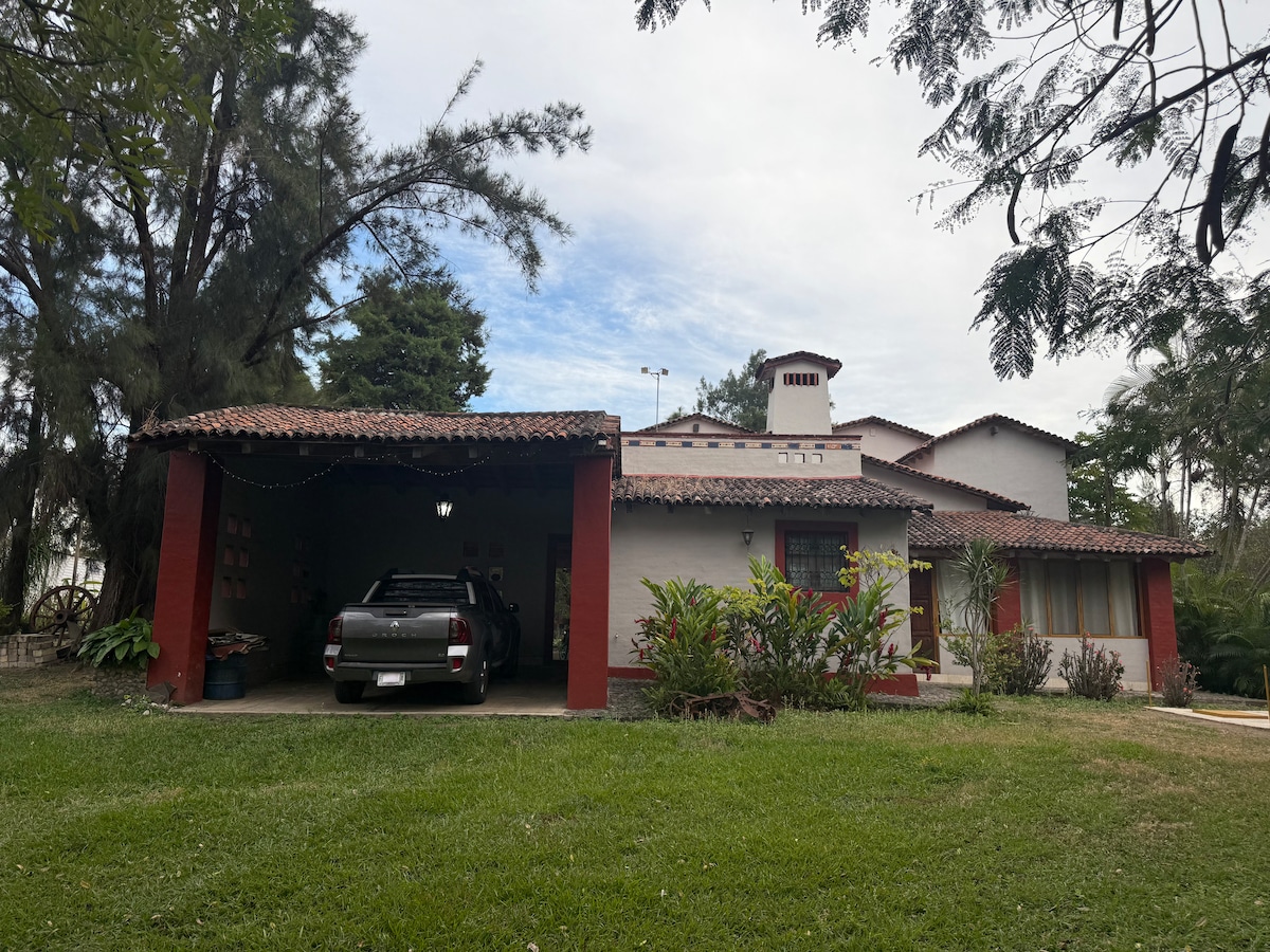 Relájate con toda la familia en este alojamiento donde la tranquilidad se respira. Ubicado en Cofradía de Suchitlán (10 minutos después de Suchitlan). La entrada esta sobre la carretera pero la casa esta alejada sin contaminacion. Cuenta con 3 cuartos, 3 baños, 2 salas, cocina, comedor y amplia terraza, cuenta con área verde de gran tamaño y una barranca de la misma propiedad donde pueden bajar caminando y disfrutar de la naturaleza, un arroyo y grandes nogales. SE PROHÍBEN FIESTAS