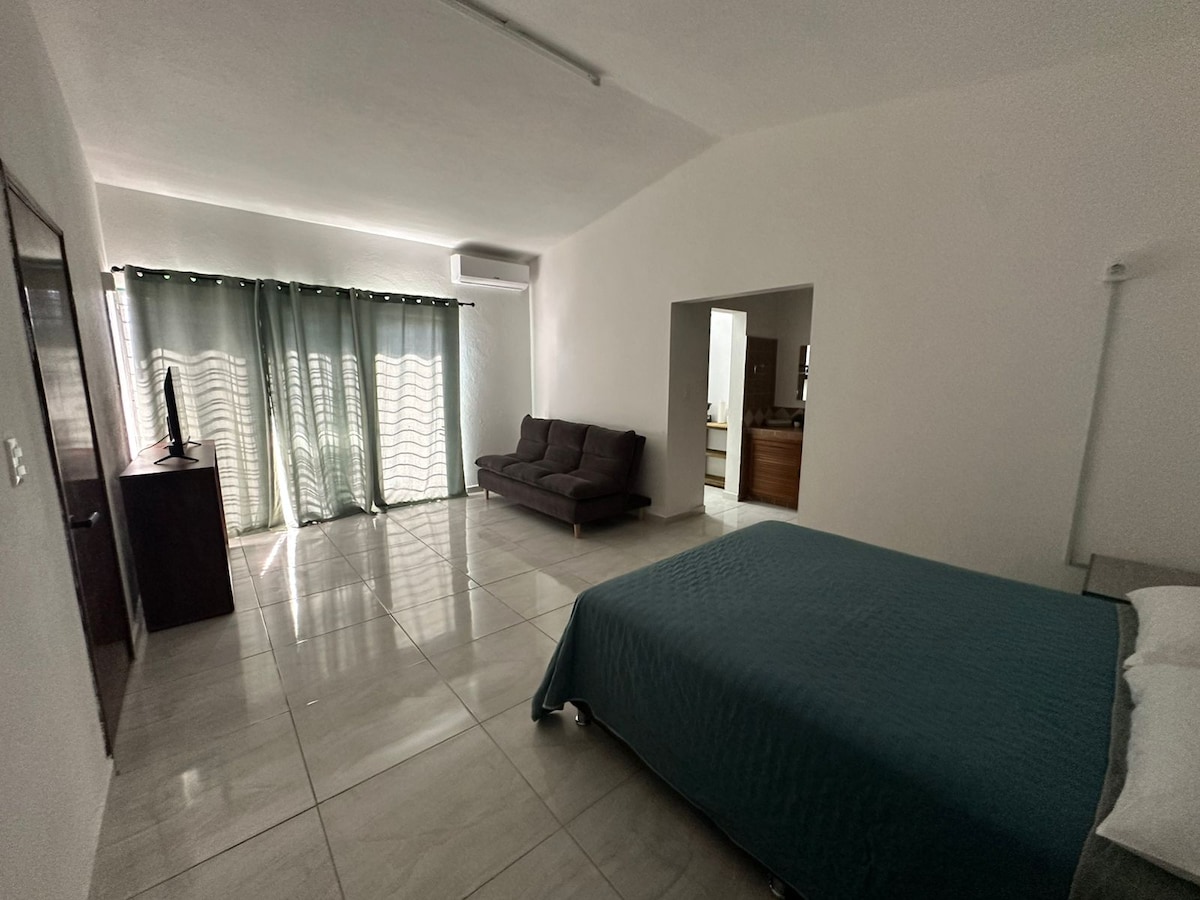 Acogedor estudio privado en Colima. Cama matrimonial, aire acondicionado, WiFi de alta velocidad, Smart TV y baño completo con regadera tipo lluvia. Entrada independiente y detalles en madera que brindan calidez. A pocos minutos de centros comerciales, restaurantes y cines. Ideal para estancias cortas, viajes de trabajo o descanso. ¡Conéctate, relájate y disfruta!