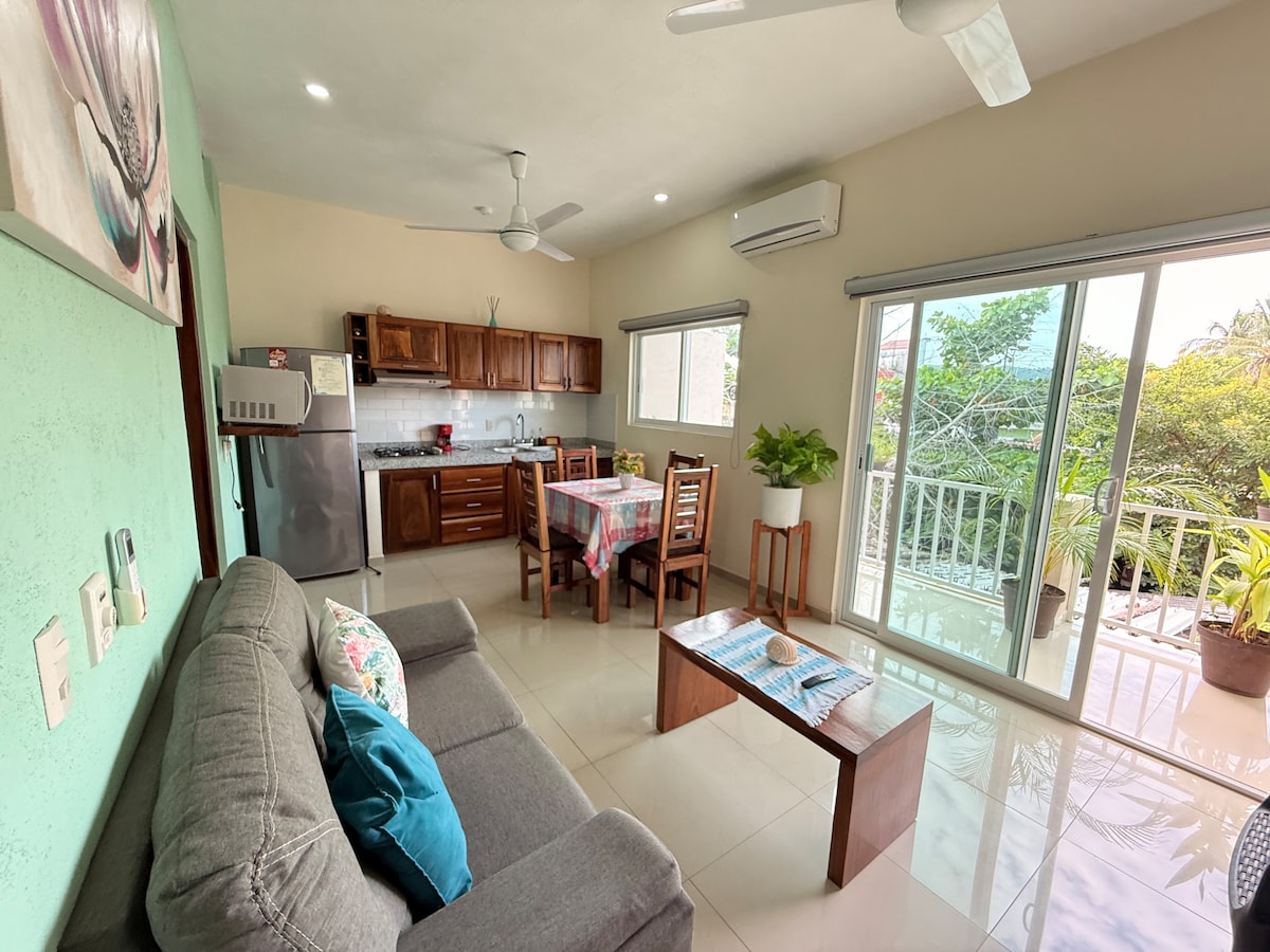 The apartment is the ideal place to spend an unforgettable stay in Manzanillo. ✨ Just 5 minutes by car / 10 minutes walking to the beach. 🏝️ Located on the first floor facing the pool and the palapa. 🏖️ You have restaurants, bars, and supermarkets nearby within walking distance. Great location. 🍳🦐🦪🌮🍔🍕🍣 The common areas include a garden, palapa, pool, bathrooms, showers, and a play area. 🛝🏊🏻♀️🛟🙌🏻