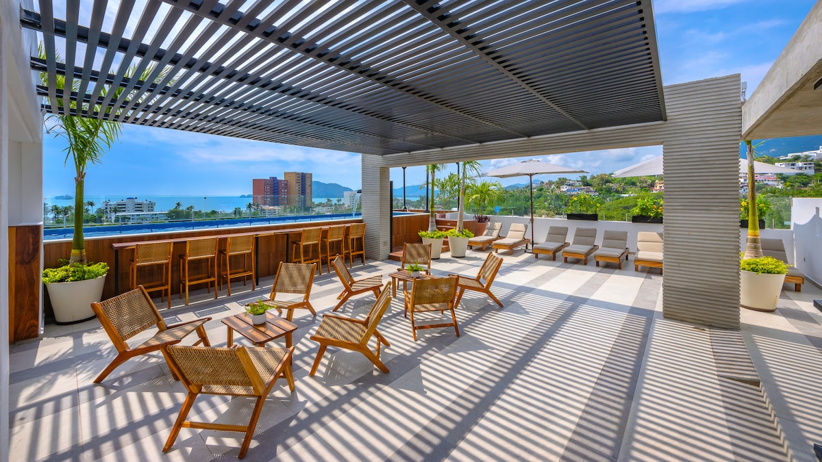 Loft con espectacular vista a la Bahía Puerto las Hadas, hermoso lugar para disfrutar en pareja ó en familia, espacios que se conectan con la naturaleza y el océano, la alberca con vista al mar es perfecta para relajarte, cuenta con chapoteadero para los pequeños de la familia, el acceso a la playa del condominio se encuentra justo abajo del área de la alberca, por lo que podrás llegar caminando, el Loft cuenta con Lavasecadora, Wi-fi, TV por cable, A/C y cocineta, perfecto para estancias largas