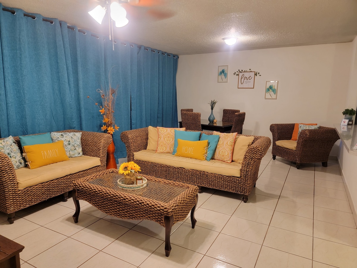 Very quiet confortable place, easy to get to and from locations with access to highways in either direction. This beautiful place is the perfect spot for your trip. It has a spacious room to work. It is also 5 min from Choliseo, 12 min from the airport 10 min from Plaza Las Américas and 15 min from The Old San Juan & Escambron beach. * Feel completely confident because our house is equipped with essential equipment such as a cistern and a power generator in case of a massive blackout.*