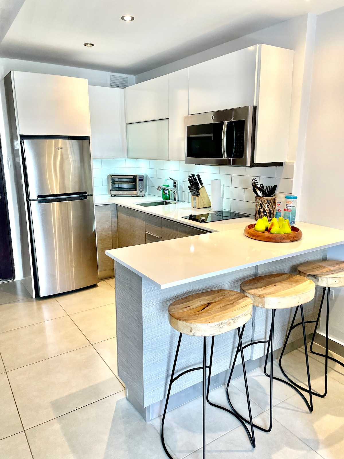 This fresh and modern property has everything you need for a comfortable and relaxing stay. In this peaceful, Miami-like building you are a quick 3 minute walk to one of Puerto Rico’s most famous bakeries, Kasalta. Take on the sun at the beautiful Ocean Park beach which is a quick 8 minute walk. When you are ready for dinner, head out to Calle Loiza, which is a culinary hot spot and nightlife center. After a day of sun and entertainment recharge in the comfortable Tempur-Pedic KING size bed.
