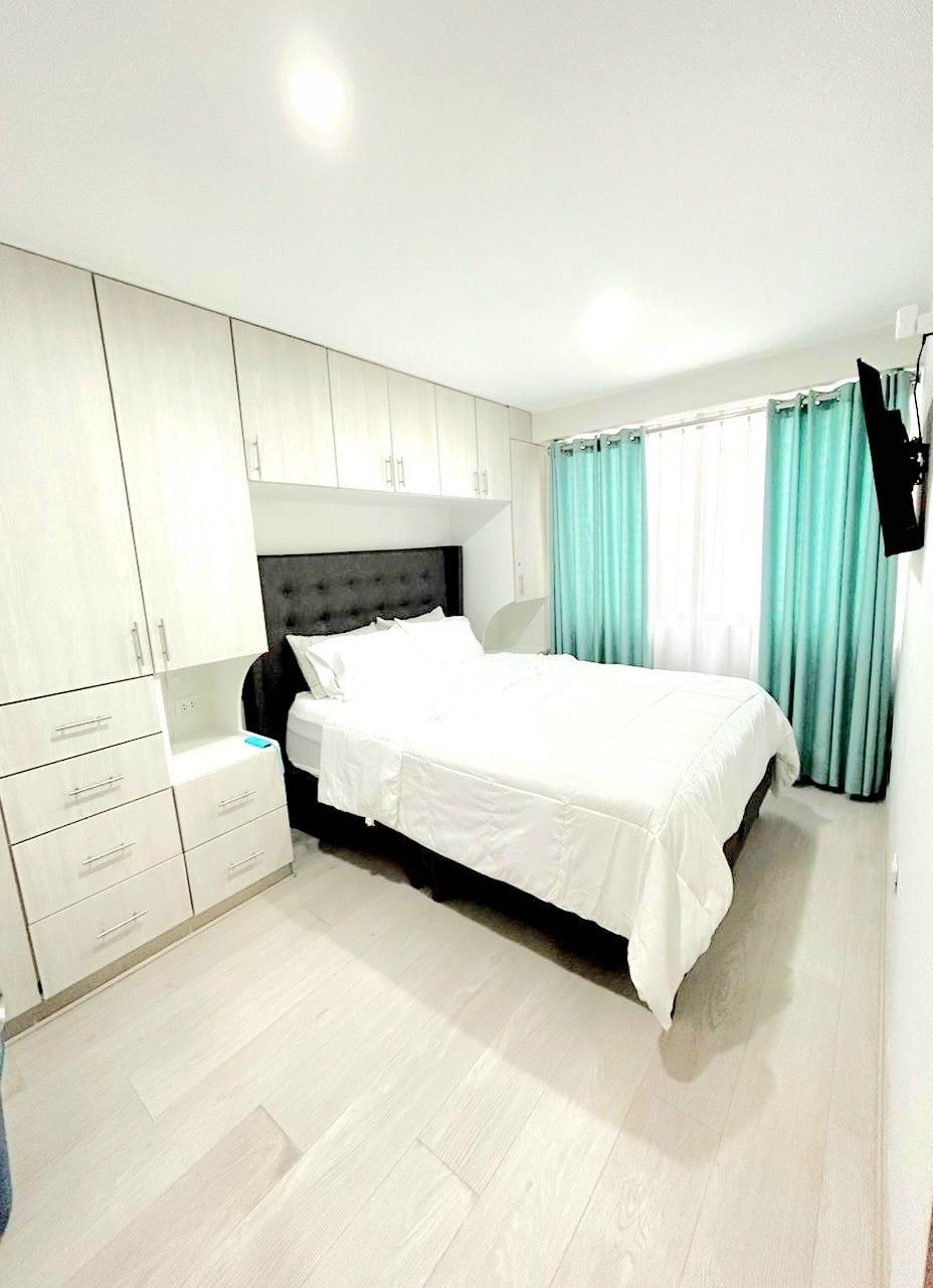 Al costado de Neoplásicas . No se comparte ninguna instalación. Para una sola persona o familia ( 4 personas). Dormitorio principal con cama rosen y Tv. Dormitorio secundario con dos camas de plaza y media. Comedor con Tv. Cocina. Lavanderia. Menaje completo. Ascensor. Ubicado cerca de los centros comerciales Primavera y Caminos del Inca y Clínicas. A pocas cuadras de la estación Angamos del Tren de Lima. Cerca a Miraflores y C.C. Jockey Plaza. Vigilancia 24/7