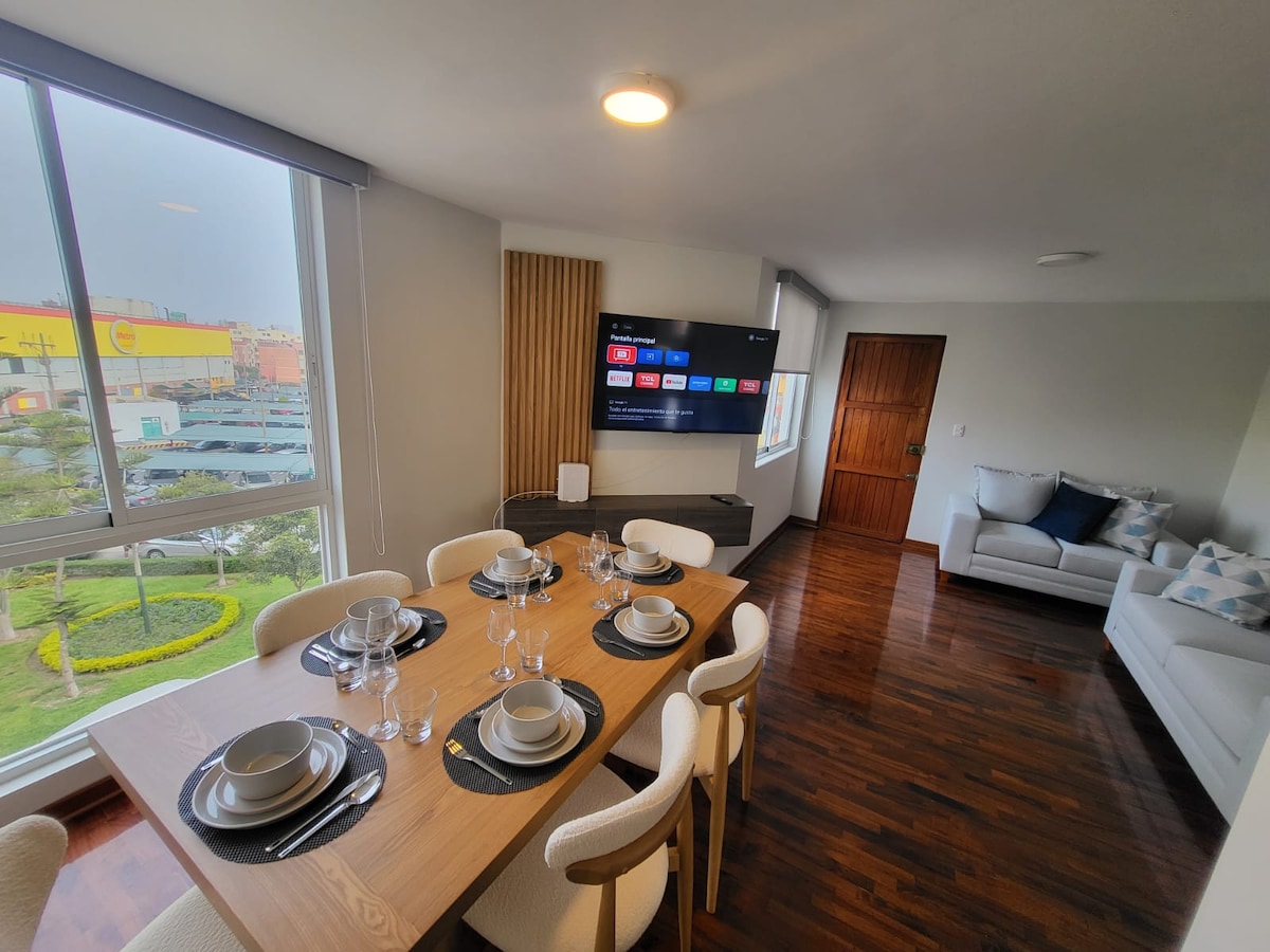 Moderno departamento en Surquillo frente a San Borja 🏙️. Disfruta de un espacio céntrico, tranquilo y totalmente equipado: cama Queen 🛏️, TV 55" 📺 con streaming, WiFi rápido 📶 y cocina completa 🍴. Ideal para quienes visitan el INEN 🏥(Neoplásicas), centros comerciales 🛍️ o distritos como Miraflores y San Isidro 🌆. Con fácil acceso al tren eléctrico 🚆 y transporte público 🚍, es perfecto para estadías de negocios o descanso.